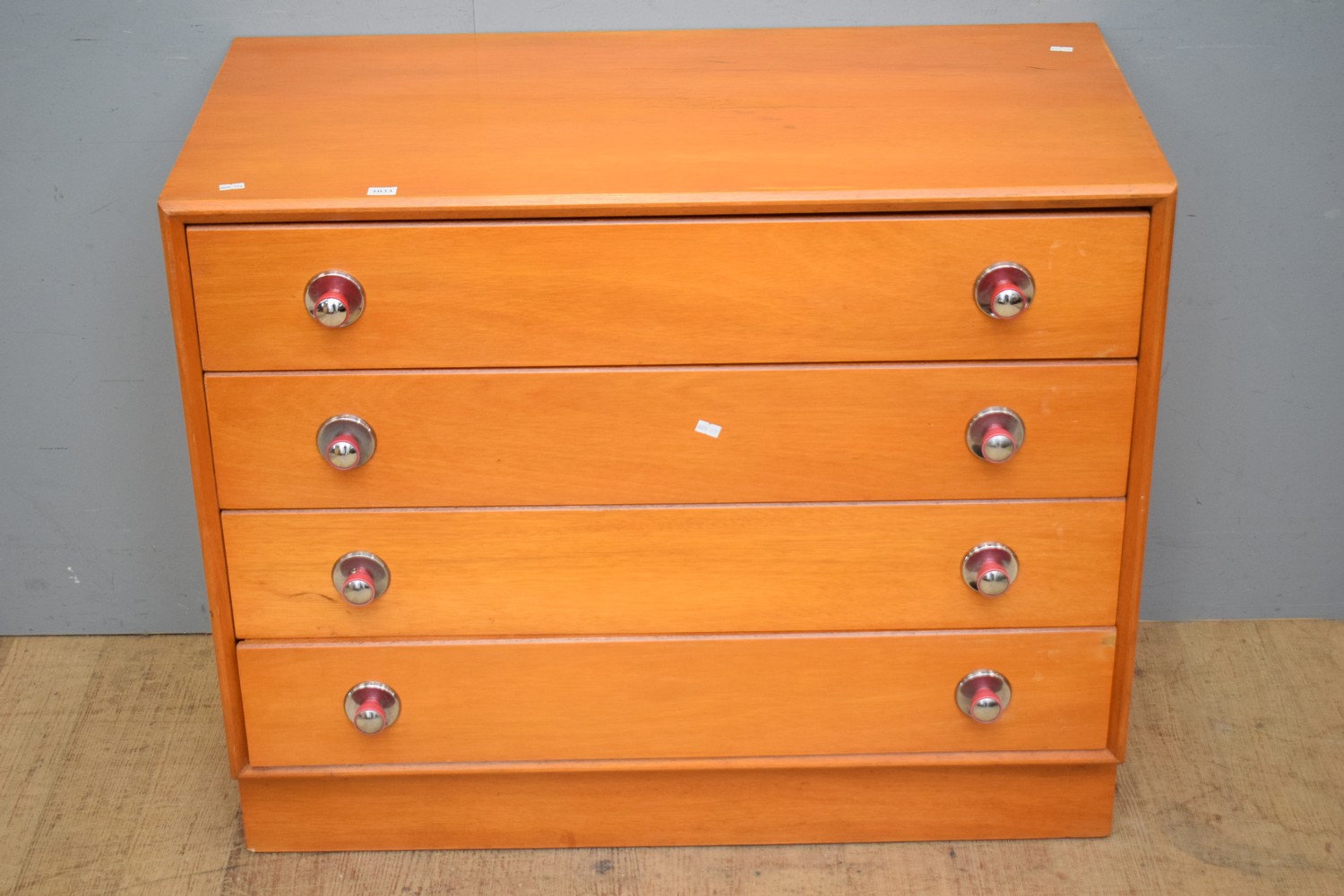 A MID-CENTURY TEAK FOUR DRAWER CHEST (75H X 90W X 47D CM)
