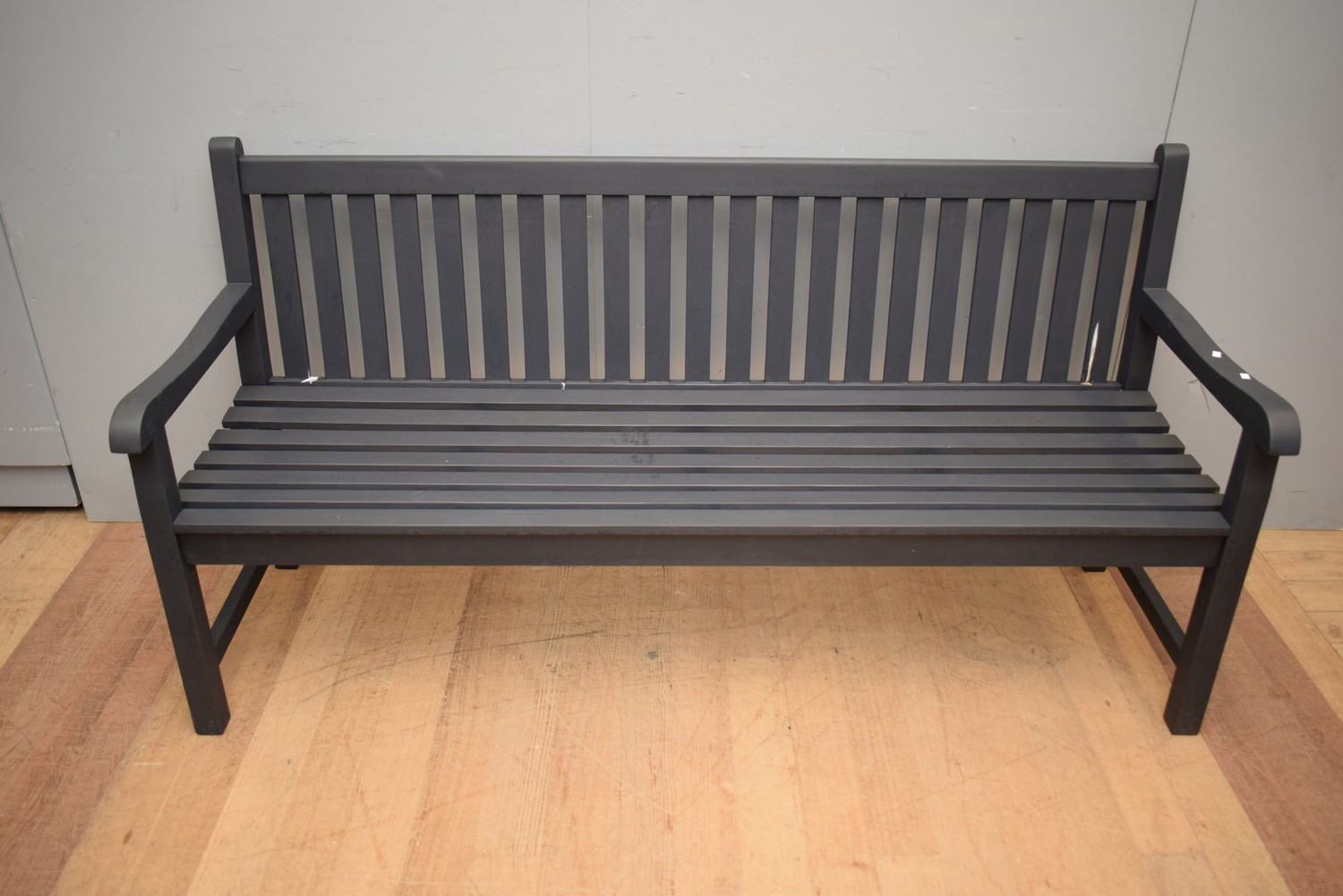 A FRESHLY PAINTED TEAK BENCH SEAT (92H X 180W x 64D CM)