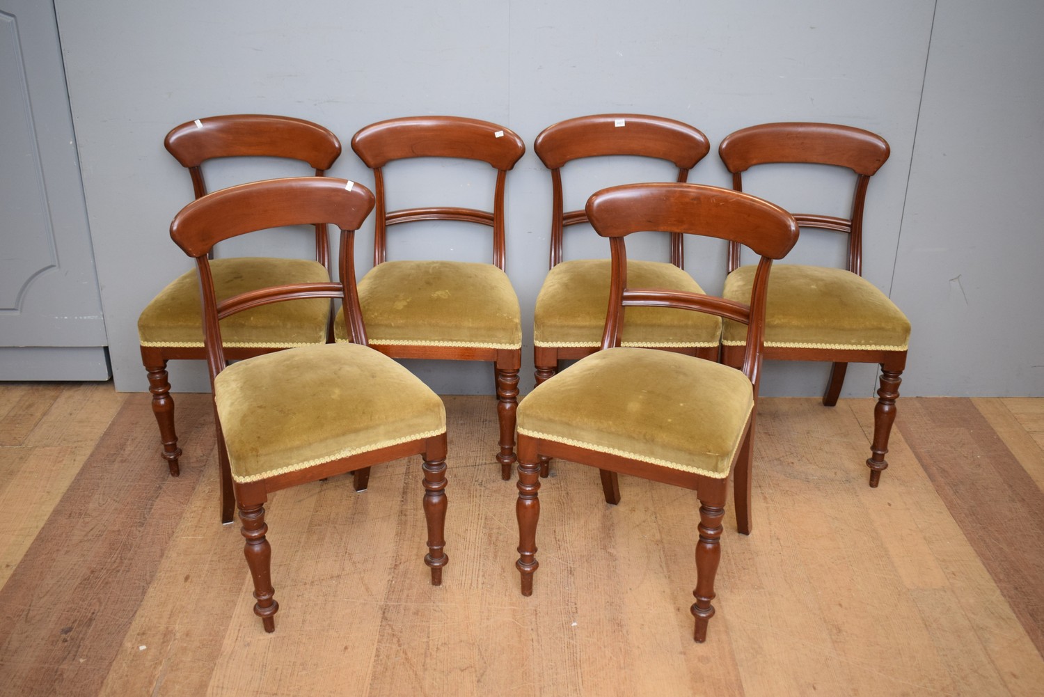 A SET OF SIX VICTORIAN MAHOGANY DINING CHAIRS (A/F) (85H X 47W X 50D CM)