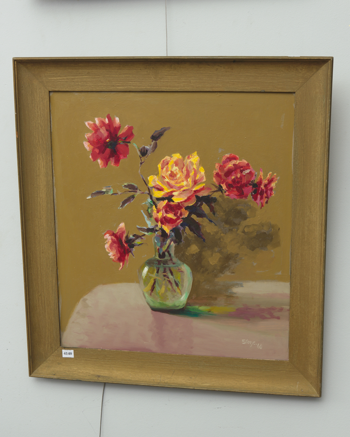 ROSES, OIL ON BOARD, SIGNED AND DATED STONE '60, 54.5 X 48.5 CM
