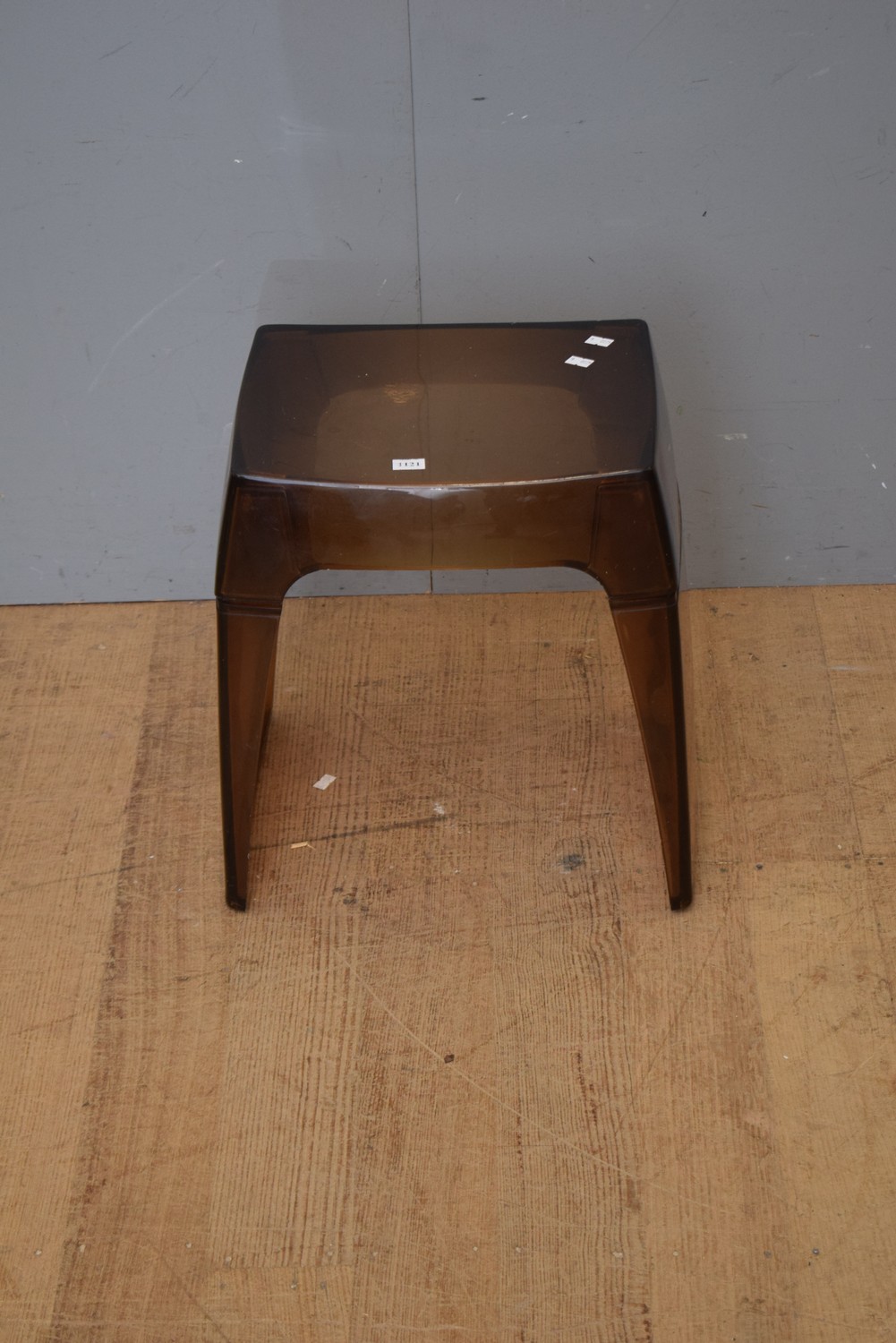 A SMOKED BROWN MID-CENTURY STOOL (A/F) (43H X 36W X 31D CM)