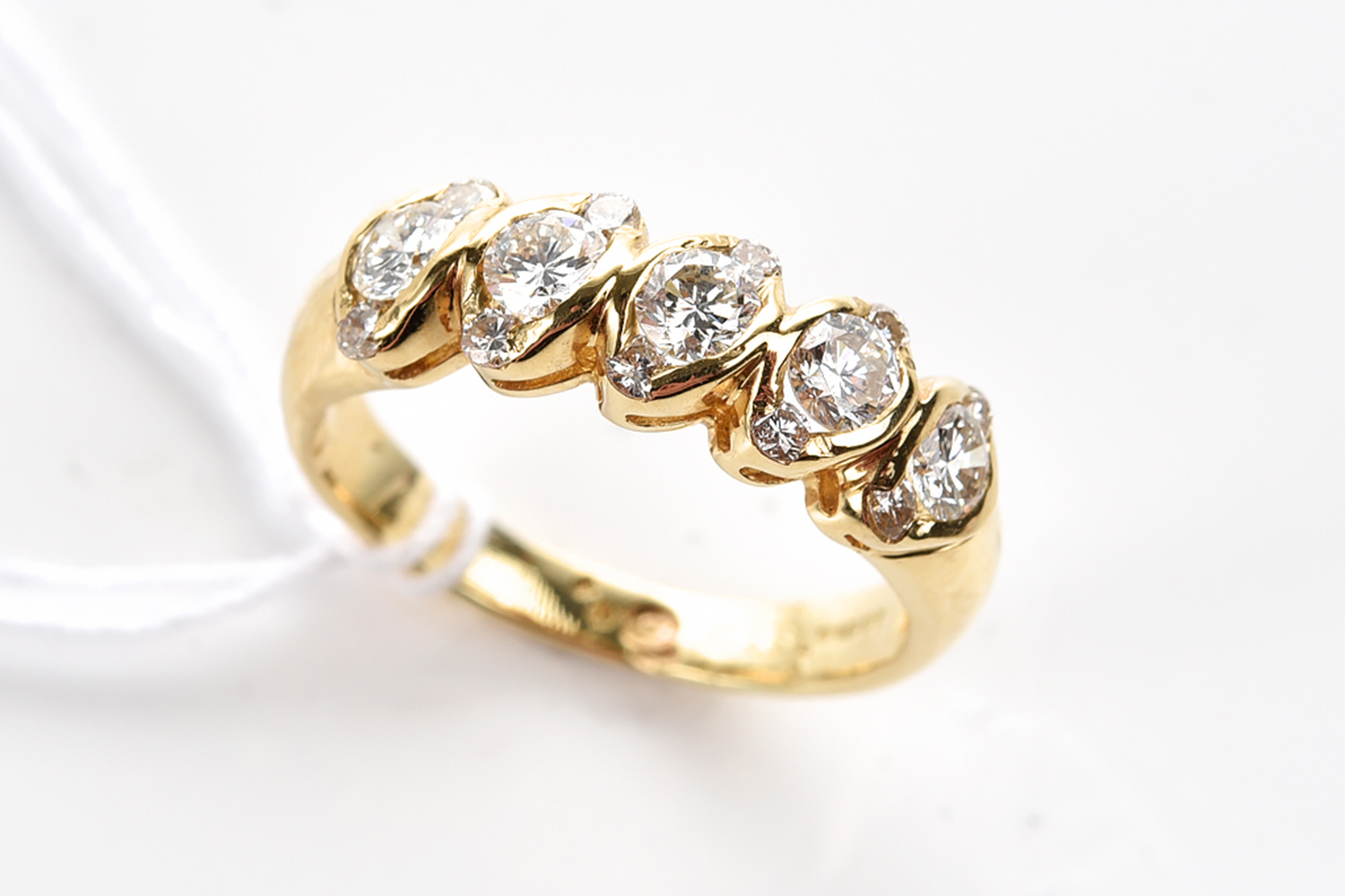 A DIAMOND DRESS RING IN 18CT GOLD, THE DIAMONDS ESTIMATED 0.45CTS, SIZE J, 3.8GMS