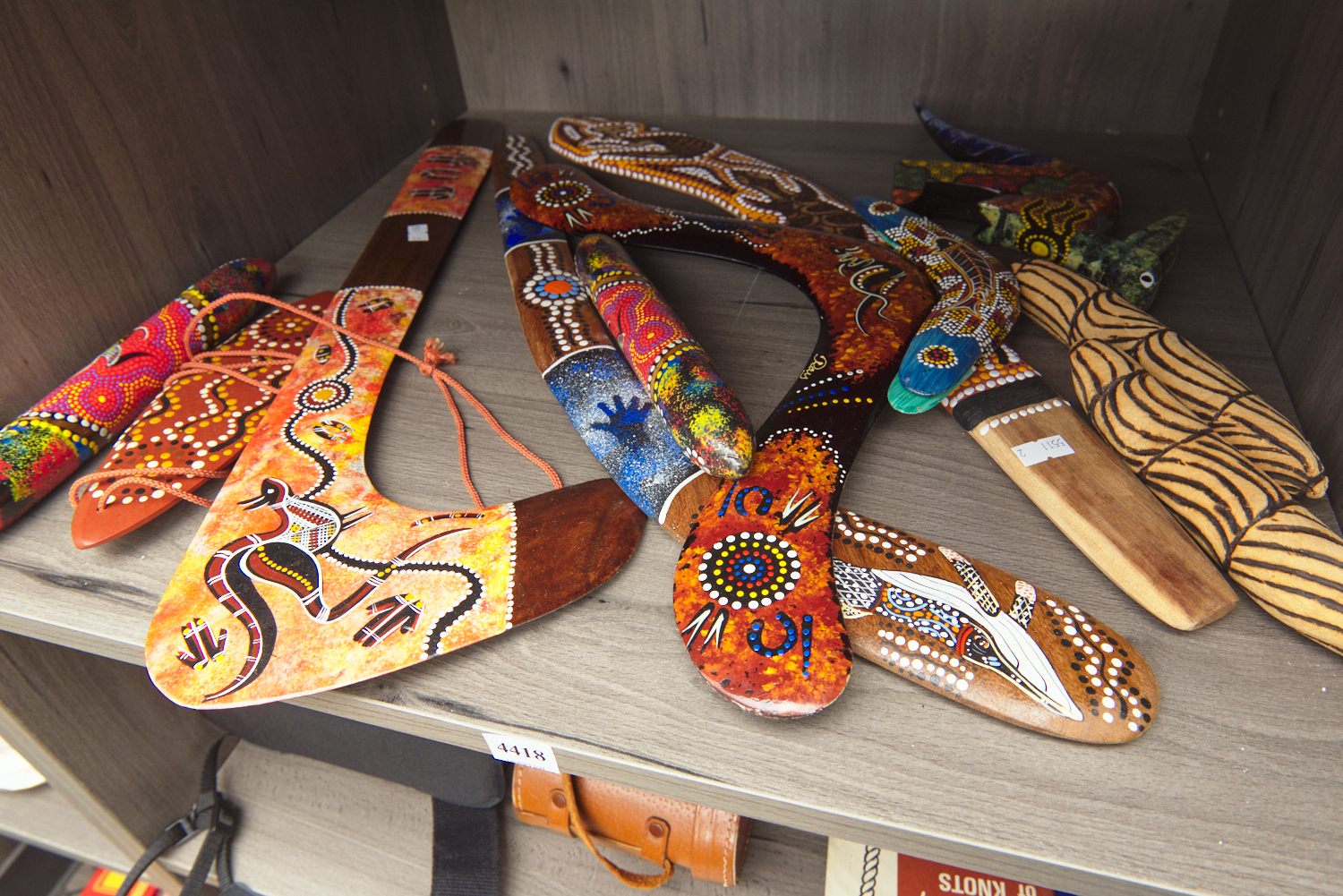 A COLLECTION OF PAINTED BOOMERANGS AND OTHER ABORIGINAL ITEMS