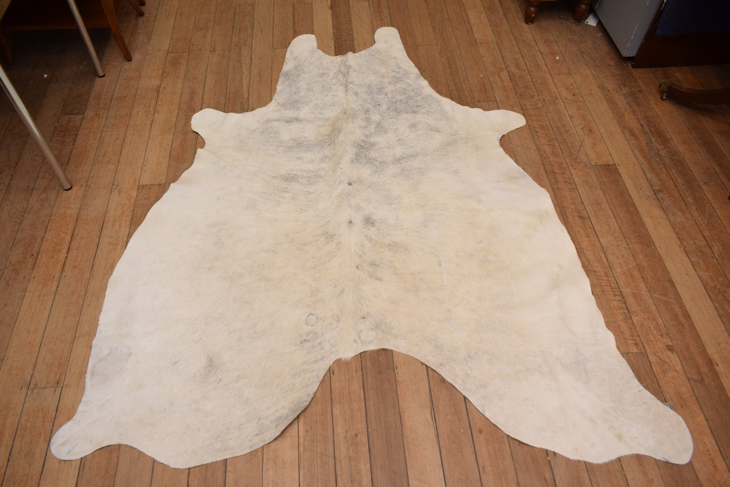 A WHITE AND GREY COW HIDE (200 X 235 CM)