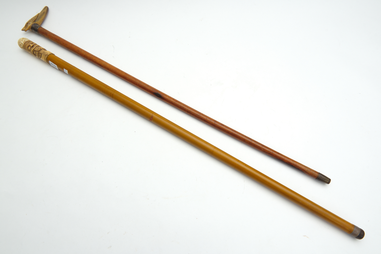 TWO ANTIQUE WALKING STICKS, 87 CM AND 80 CM LONG