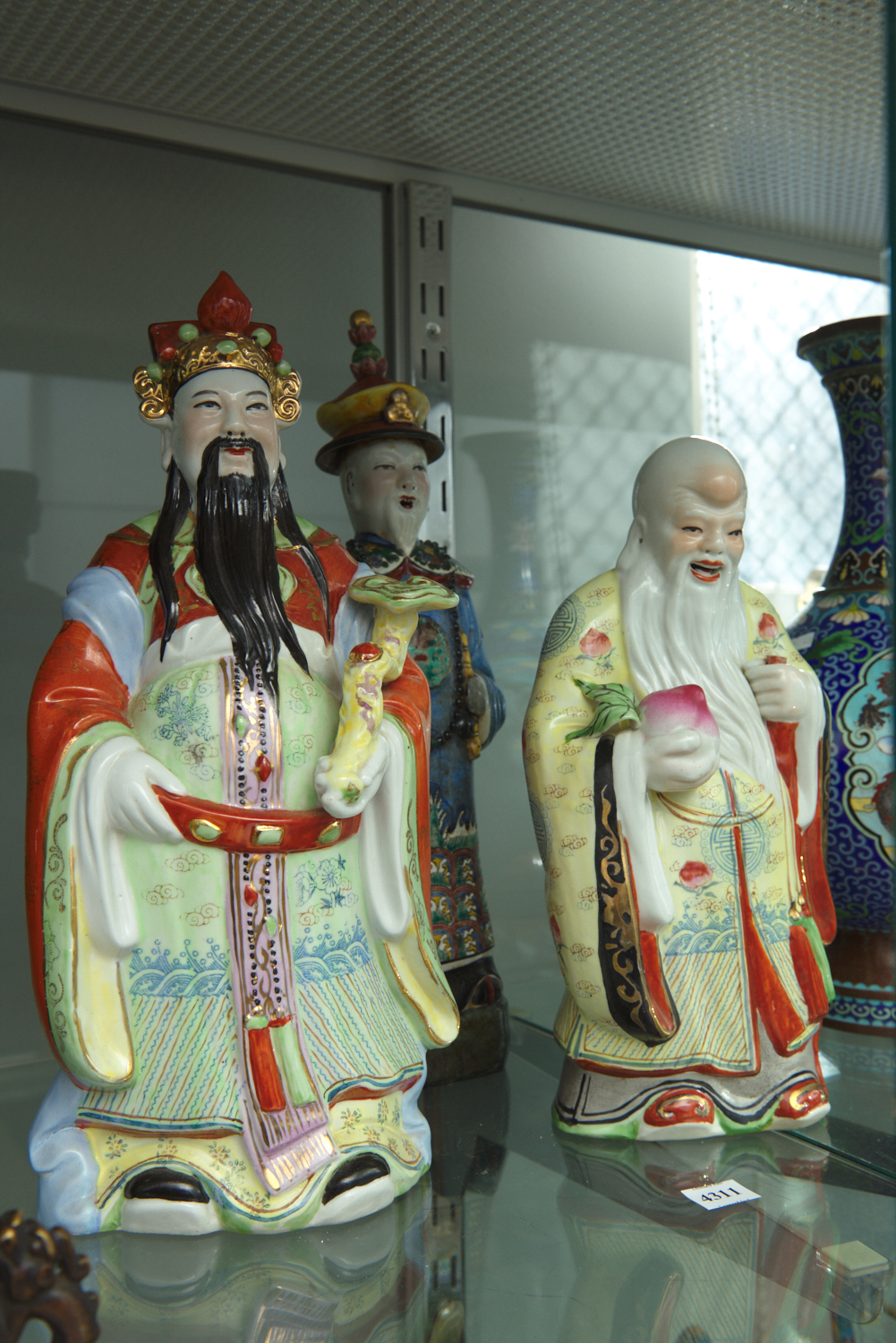 A GROUP OF THREE POLYCHROME FIGURES OF SAGES (ONE A/F)