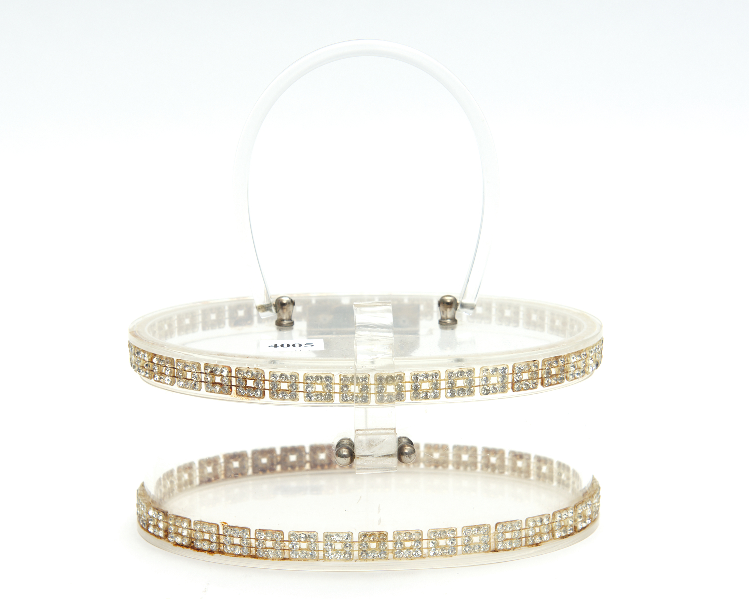 A VINTAGE LUCITE EVENING BAG, 19.5 CM WIDE