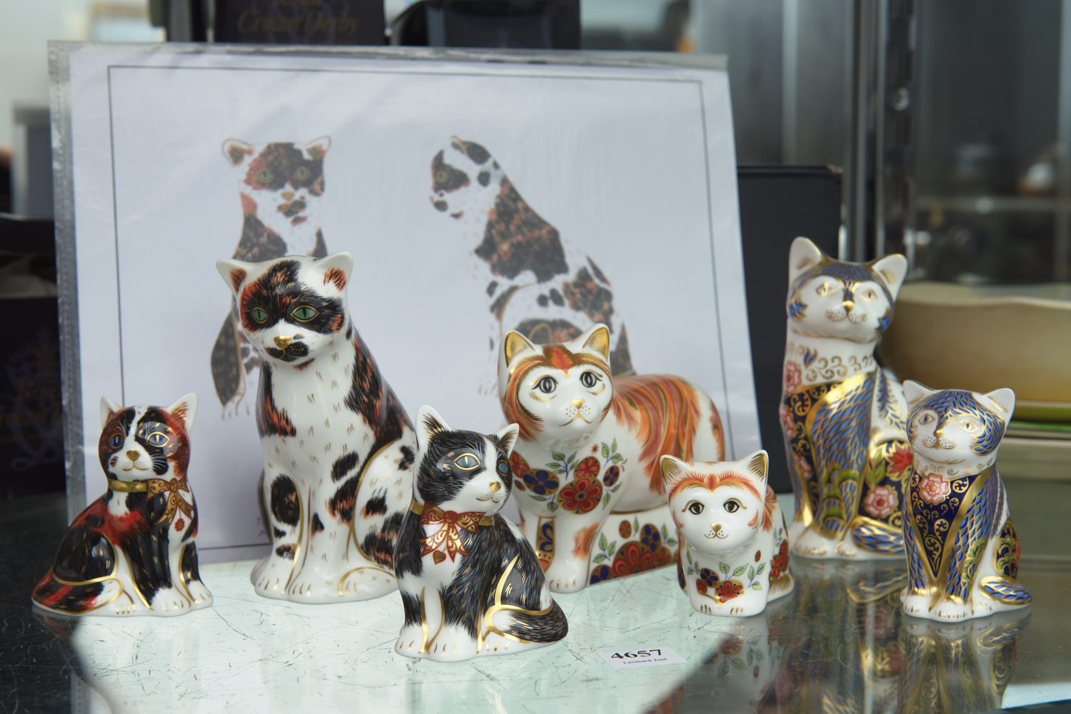 SIX ROYAL CROWN DERBY PAPERWEIGHTS, INCLUDING 'TORTOISESHELL MOTHER CAT'; 'BLACK AND WHITE KITTEN' (BOX A/F); 'CALICO KITTEN' (BOX A/F); 'GUILD SUGAR & SPICE' 2011 GUILD MEMBERS' PACK; 'FIRESIDE KITTEN'; AND 'FIRESIDE CAT'