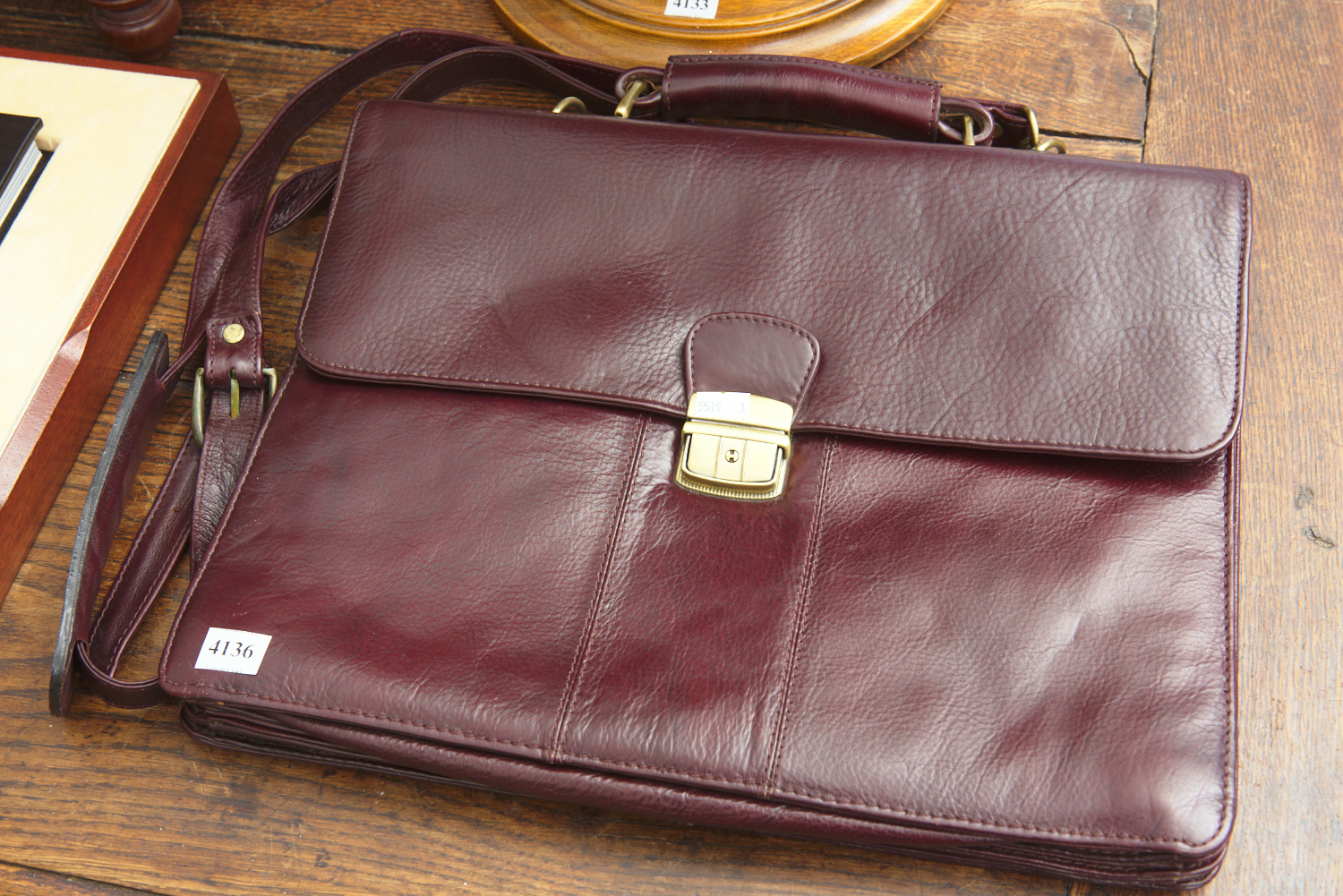 A VINTAGE LEATHER BRIEFCASE 'EAST-WEST' LONDON