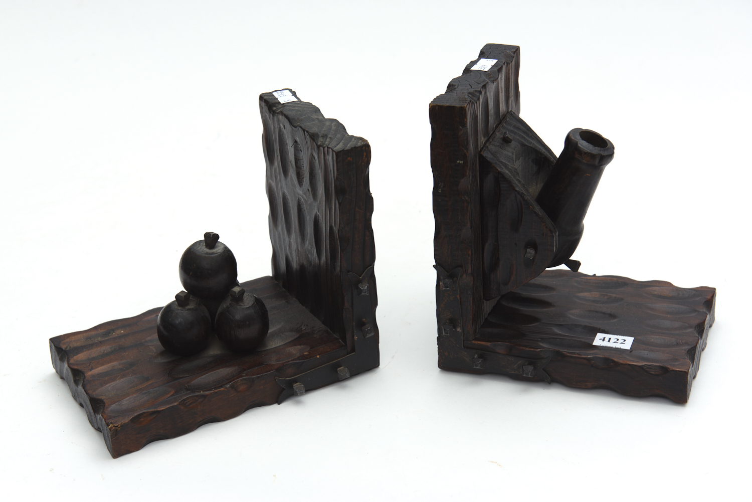 A PAIR OF SPANISH WOODEN BOOKENDS