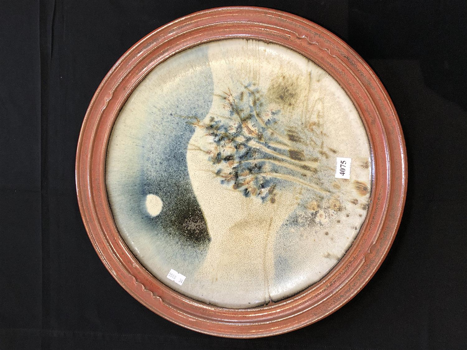 A SIGNED AUSTRALIAN STUDIO POTTERY PLATE WITH LANDSCAPE DESIGN, 40 CM DIAMETER, LEONARD JOEL DELIVERY SIZE: SMALL