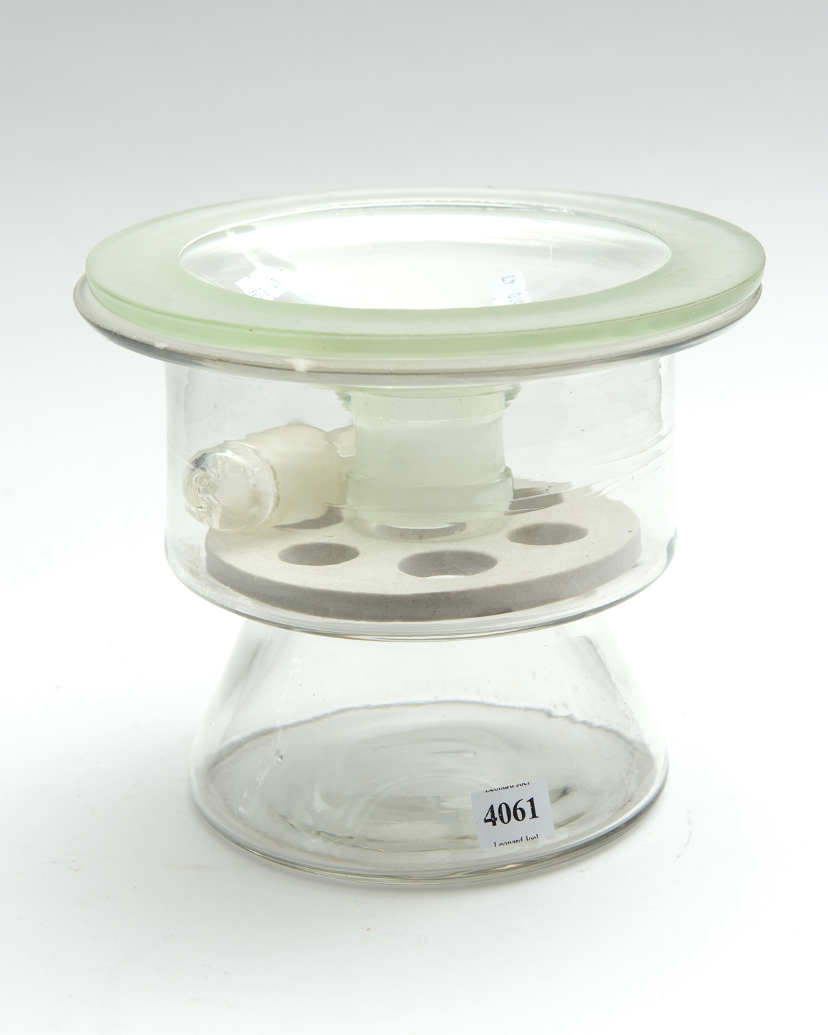 1940S SCIENTIFIC GLASS LIDDED CONTAINER WITH GLASS TAP
