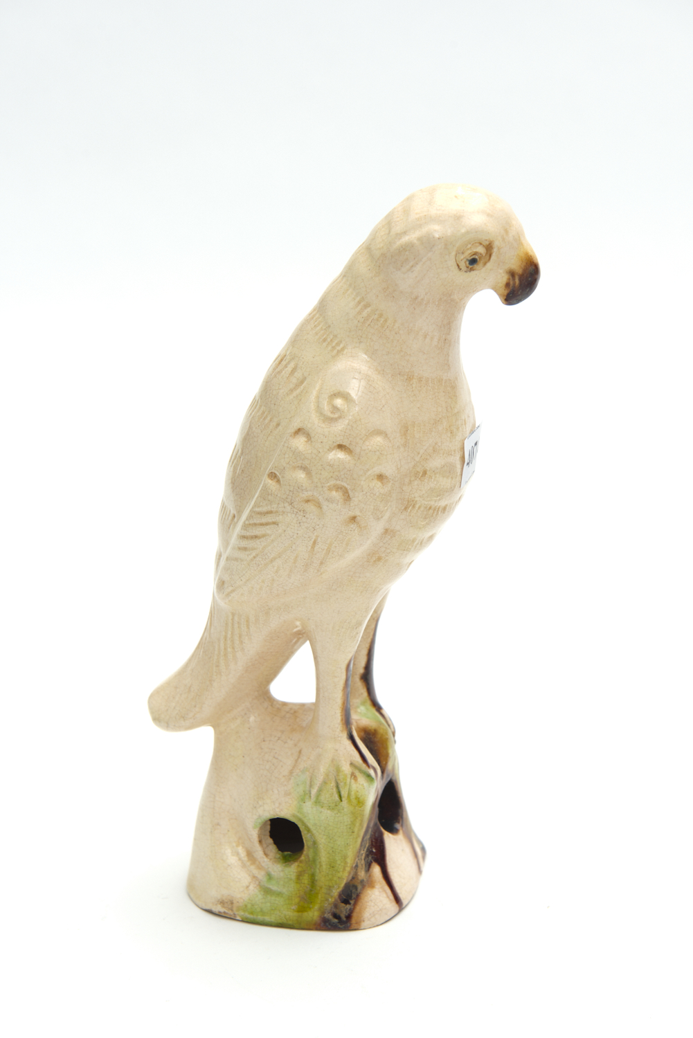 LARGE CHINESE CREAM GLAZED PORCELAIN PARROT, 26 CM HIGH