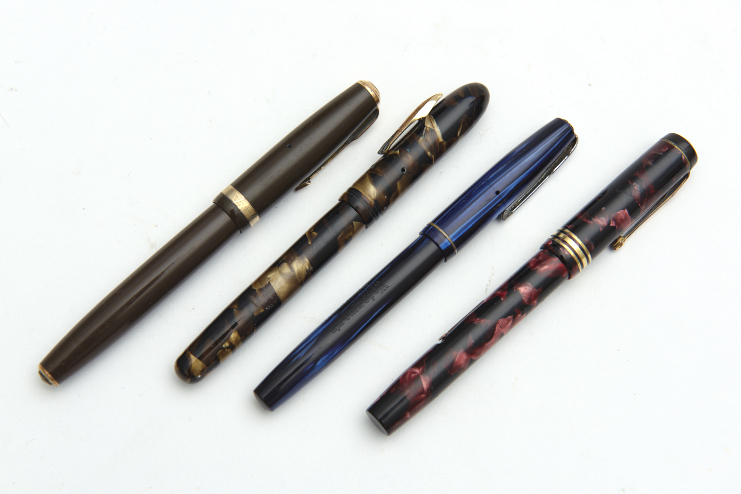 GROUP OF 4 VINTAGE FOUNTAIN PENS INCLUDING WATERMANS, PARKER & CONWAY STEWART WITH 14CT GOLD NIBS