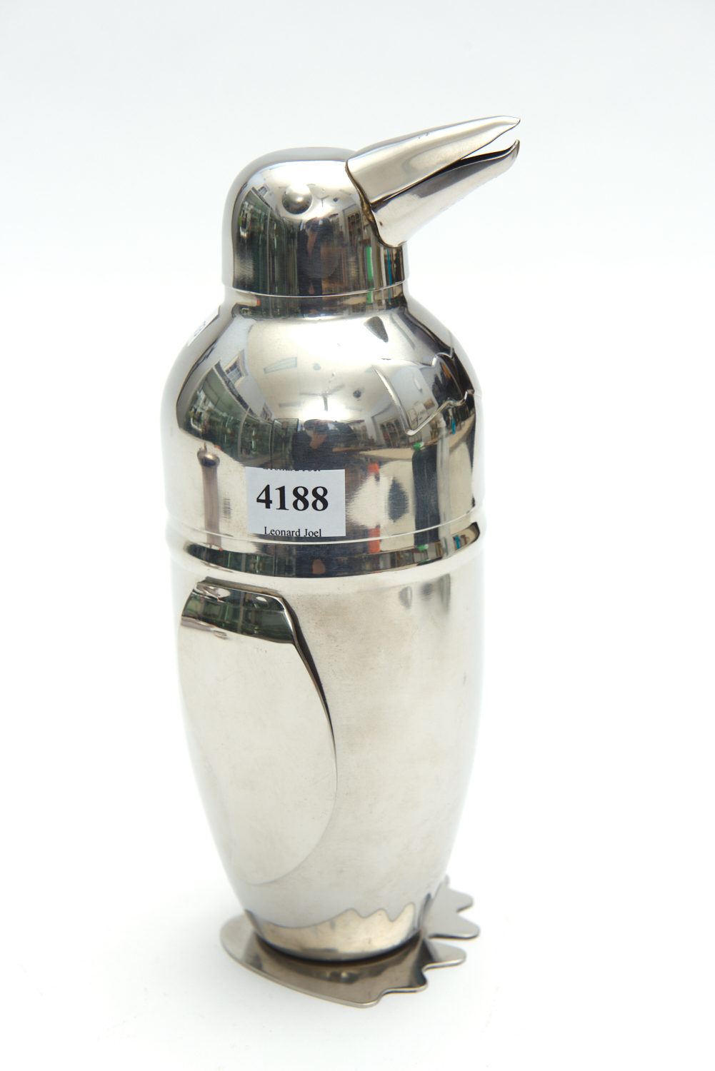SUPERB RETRO 1950S STAINLESS STEEL PENGUIN FORM COCKTAIL SHAKER, 23 CM HIGH