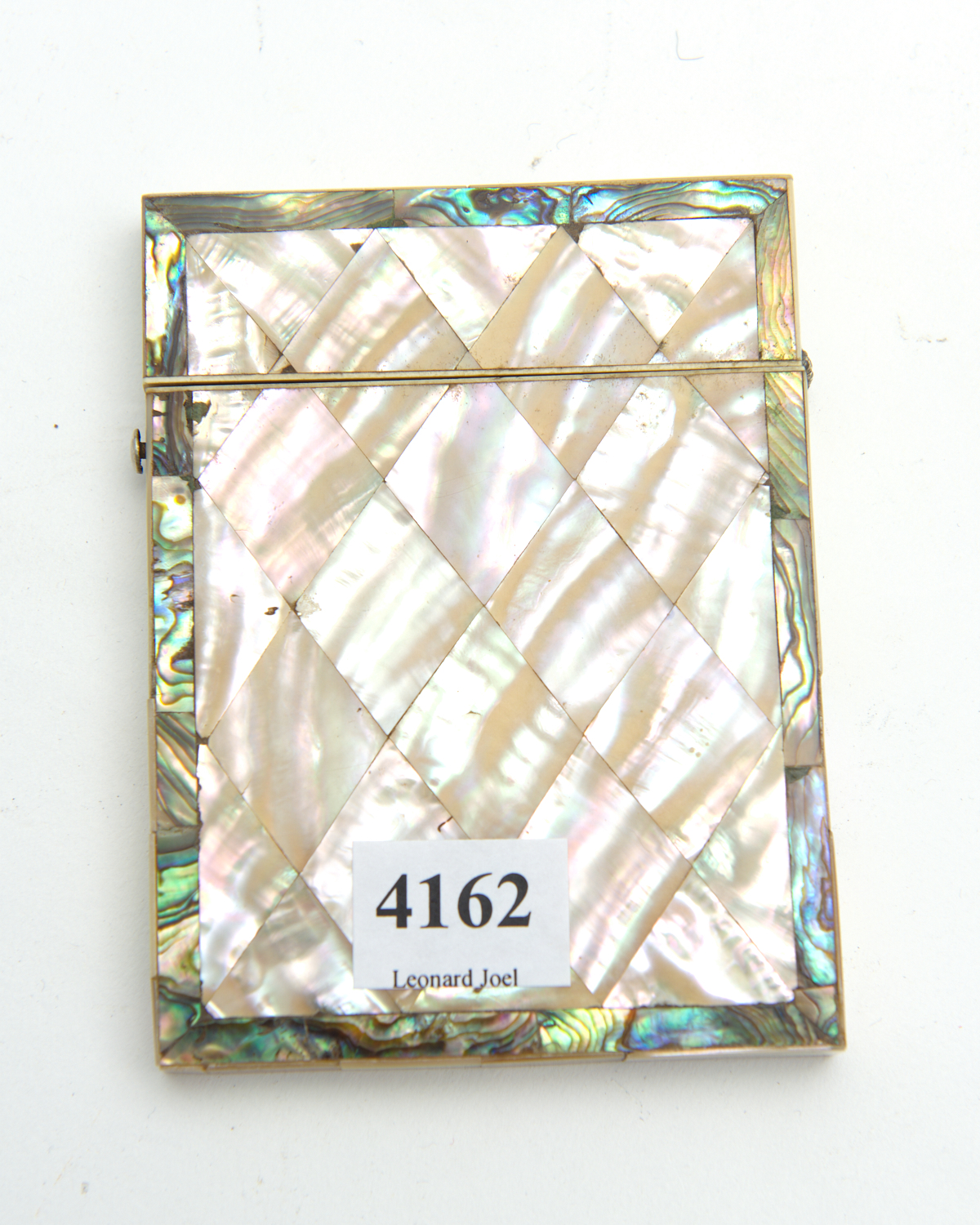 A VICTORIAN MOP, PAUA SHELL CARD CASE