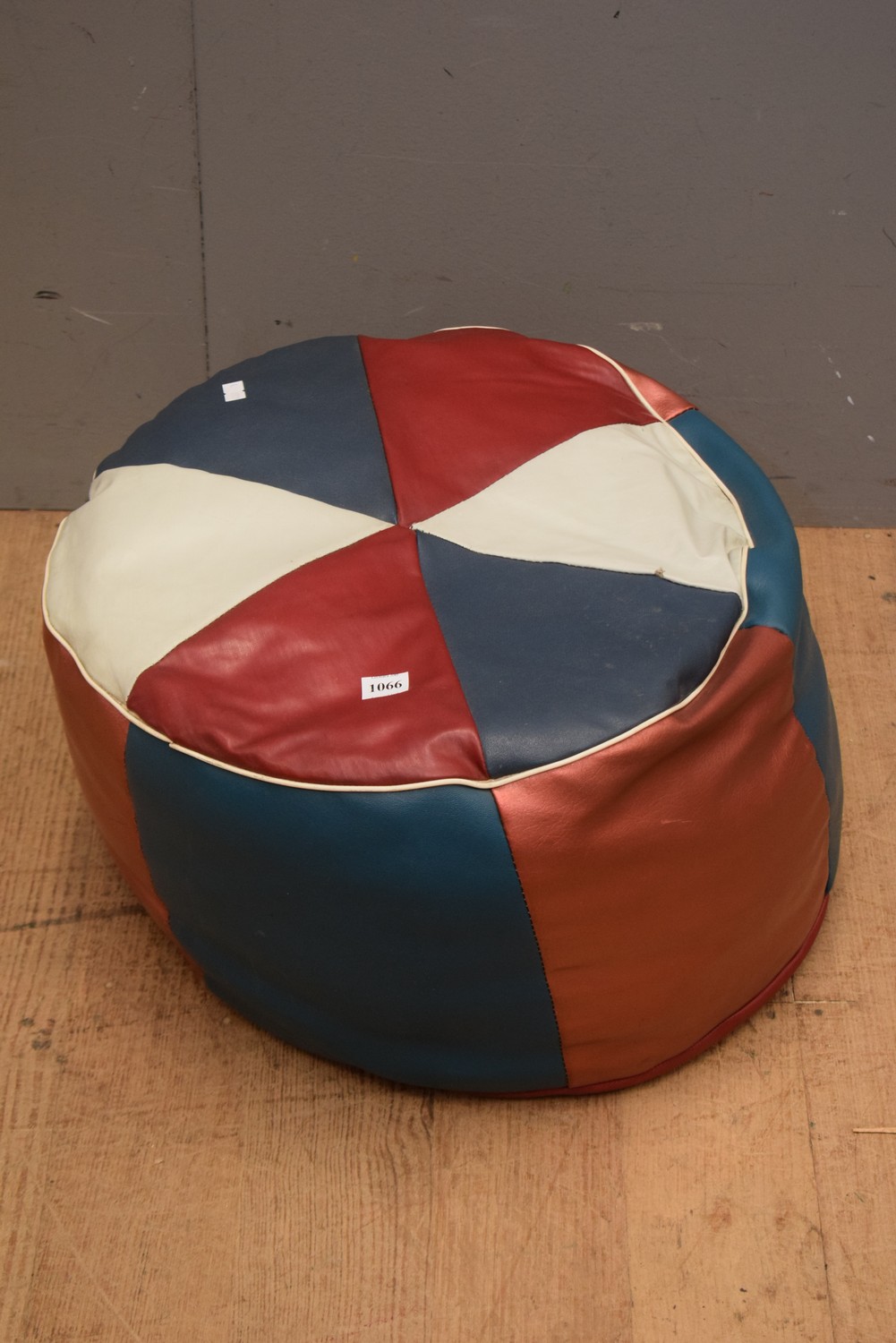 A 1950S RETRO VINYL THREE COLOUR FOOTSTOOL (26H X 50 DIAM CM)