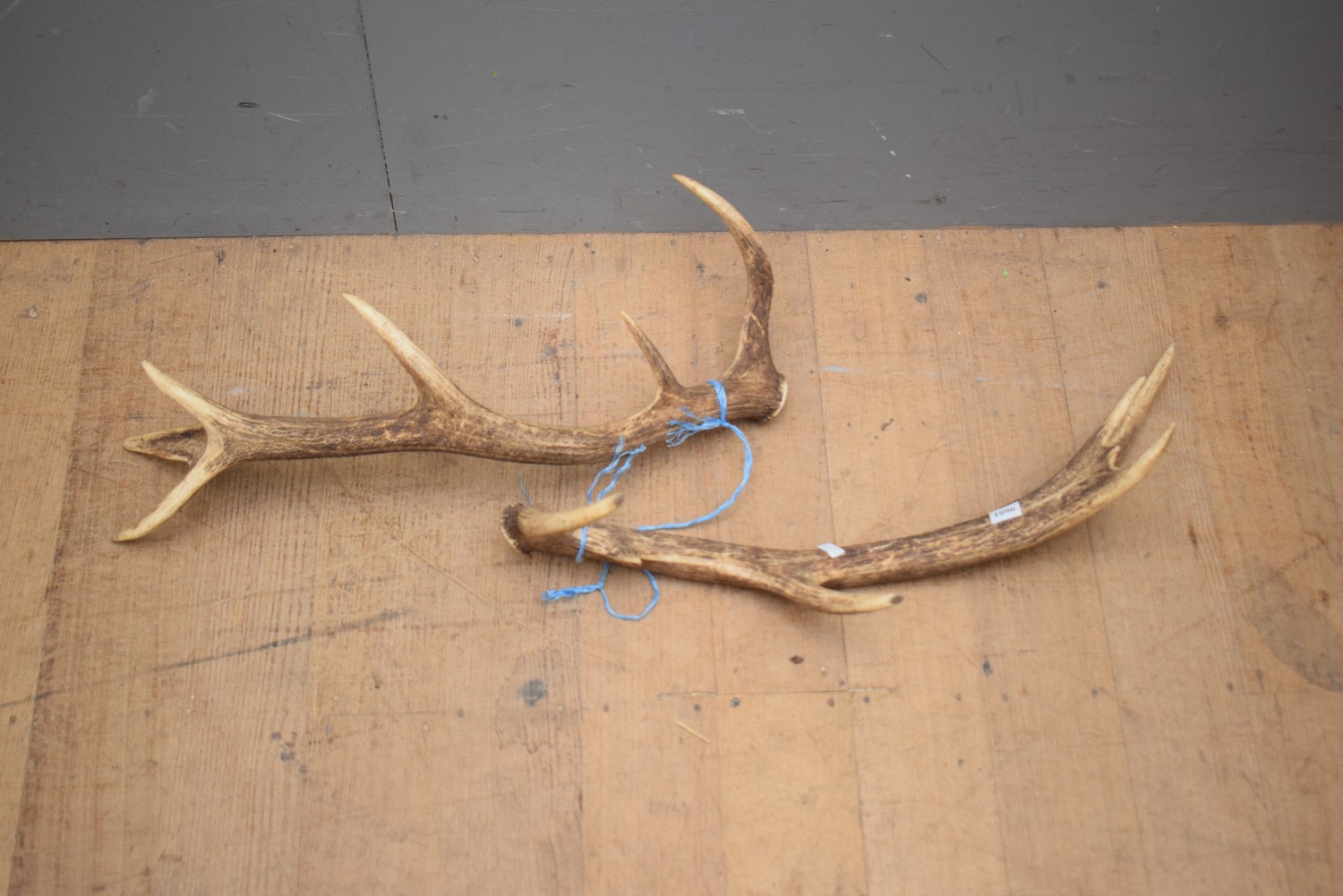 A PAIR OF MATCHED NATURALLY SHED AUSTRALIAN RED DEER ANTLERS (APPROX 62 CM) (SMALL ITEM)
