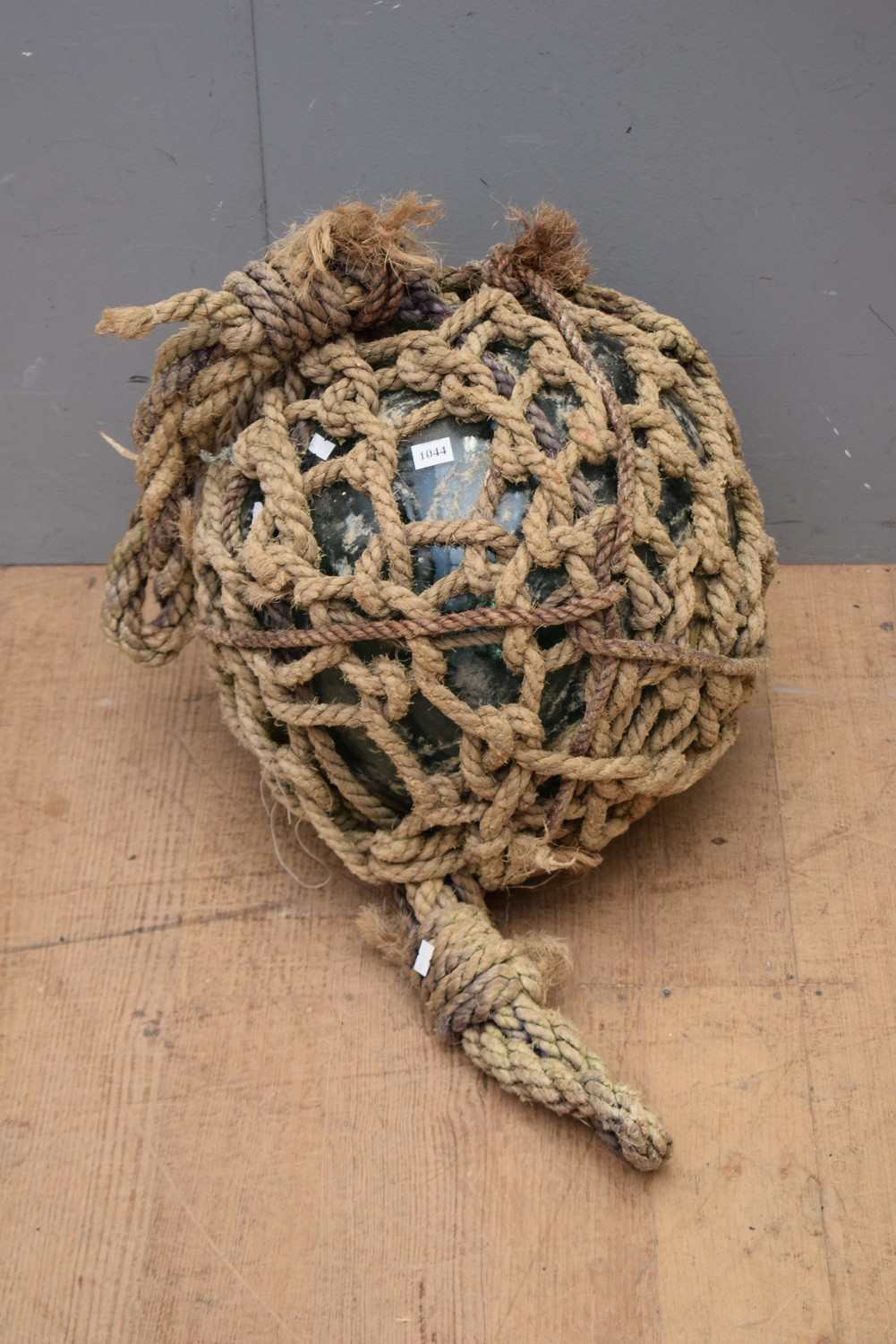 A LARGE 1920S GLASS AND NATURAL FIBRE COVERED SHIPS / FISHING FLOAT / BUOY
