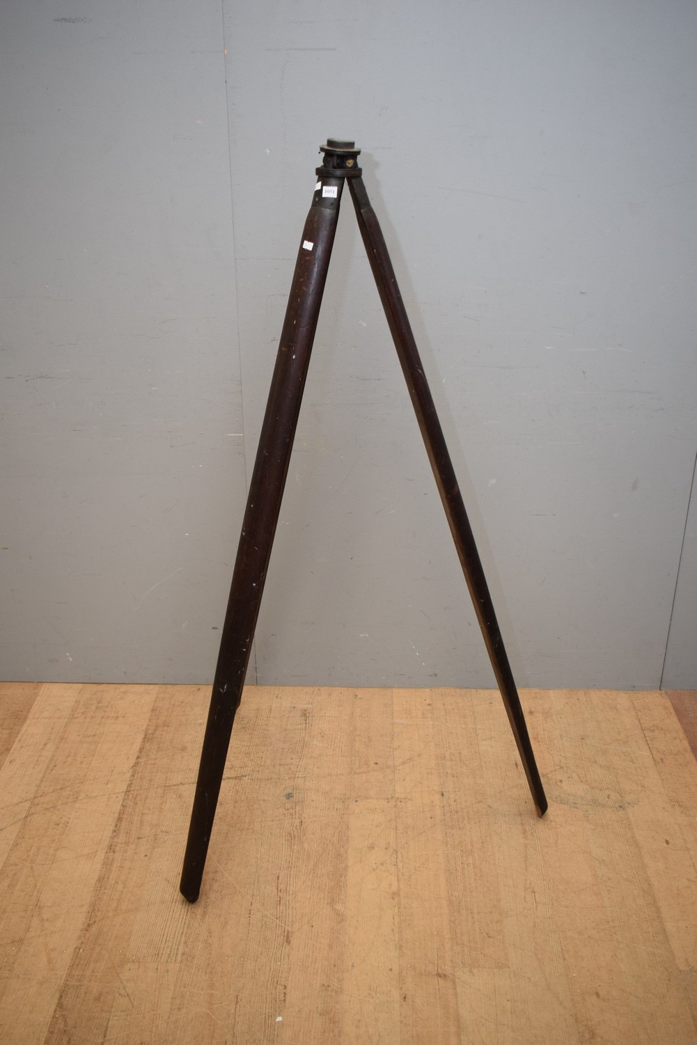 A 19TH CENTURY CEDAR AND BRASS TRIPOD STAND WITH SCREW THREAD TOP (147H CM) (MEDIUM ITEM)