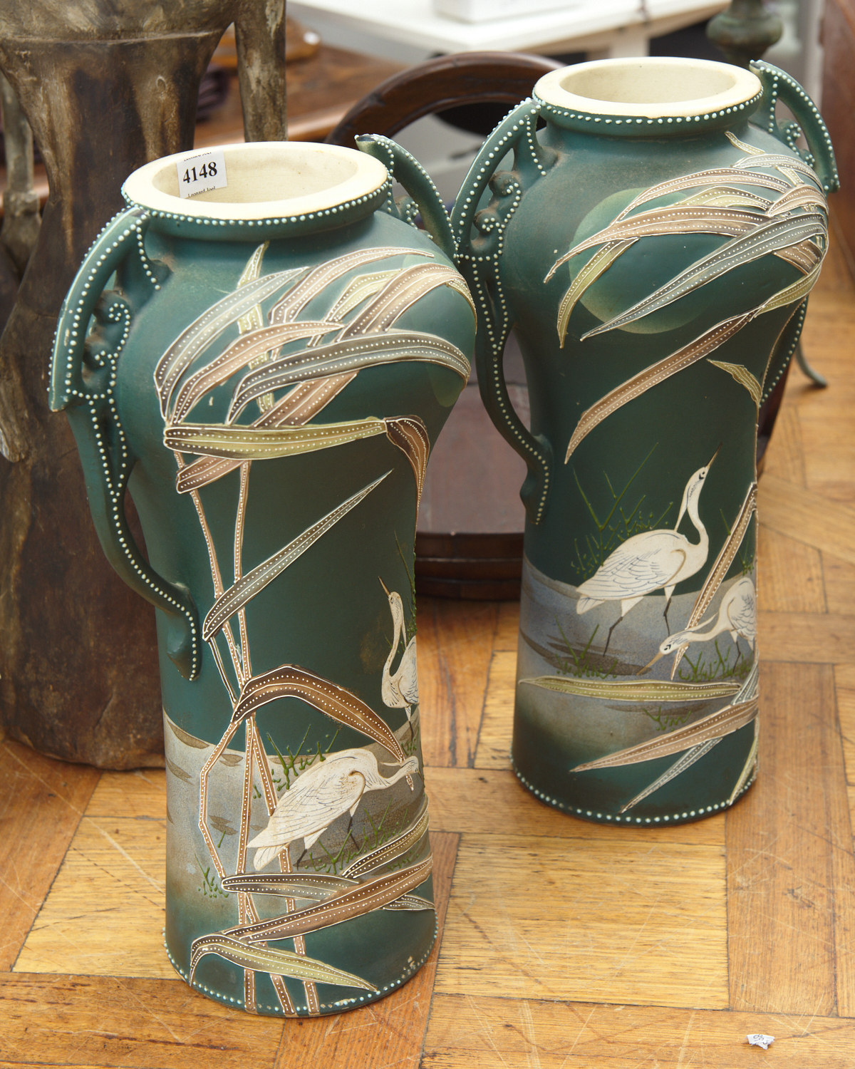 A PAIR OF TWO HANDLED JAPANESE SATSUMA VASES, 20TH CENTURY