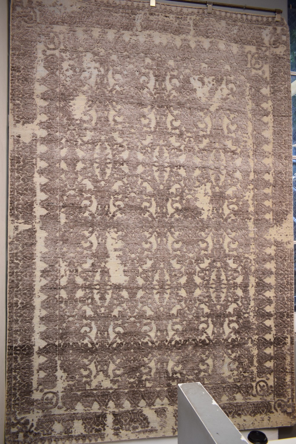 A CONTEMPORARY DESIGNER TRANSITIONAL ERASED OXIDIZED CARPET, WOOL & VISCOSE SILKY TEXTURE. FINELY HAND-KNOTTED & WITH MODERN TRANSITIONAL DESIGN OF ERASED AND EMBOSSED FLORAL PATTERNS GALLERY DISPLAYED CARPET. BRAND NEW & IN MAGNIFICENT CONDITION. SIZE: 270X184CM, ORIGIN: INDIA – RRP: $3,900