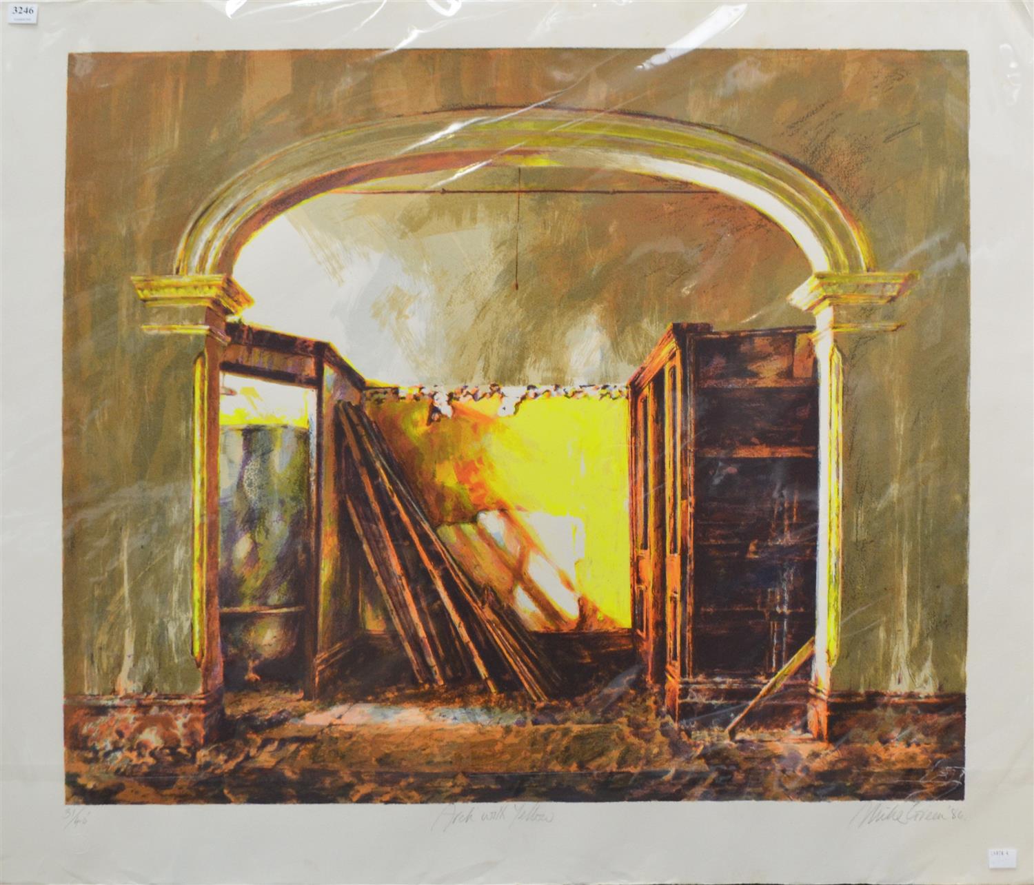MIKE GREEN, ARCH WITH YELLOW, SCREENPRINT 31/45, 81 X 90CM, BACKED AND WRAPPED FOR PROTECTION, CONDITION: FOXING AND LIGHT DISCOLOURATION, LEONARD JOEL DELIVERY SIZE: SMALL