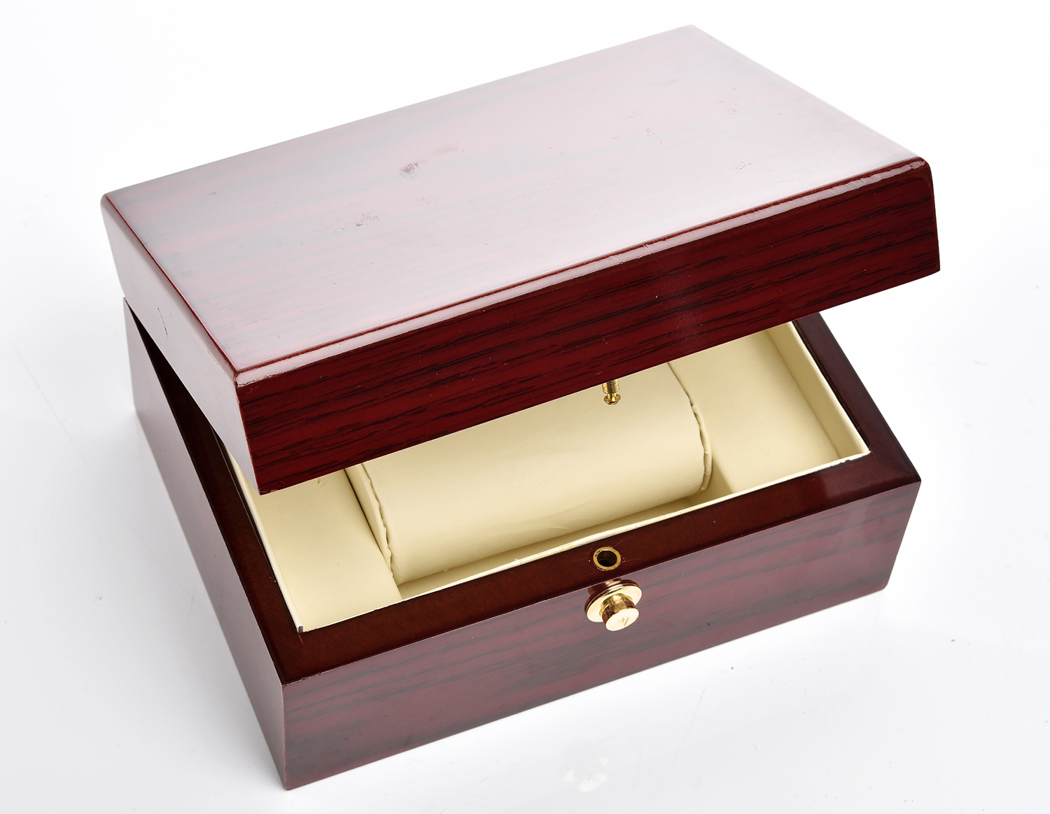 AN EMPTY WATCH CASE AND BOX IN RED, 13x17.5x8.5CM