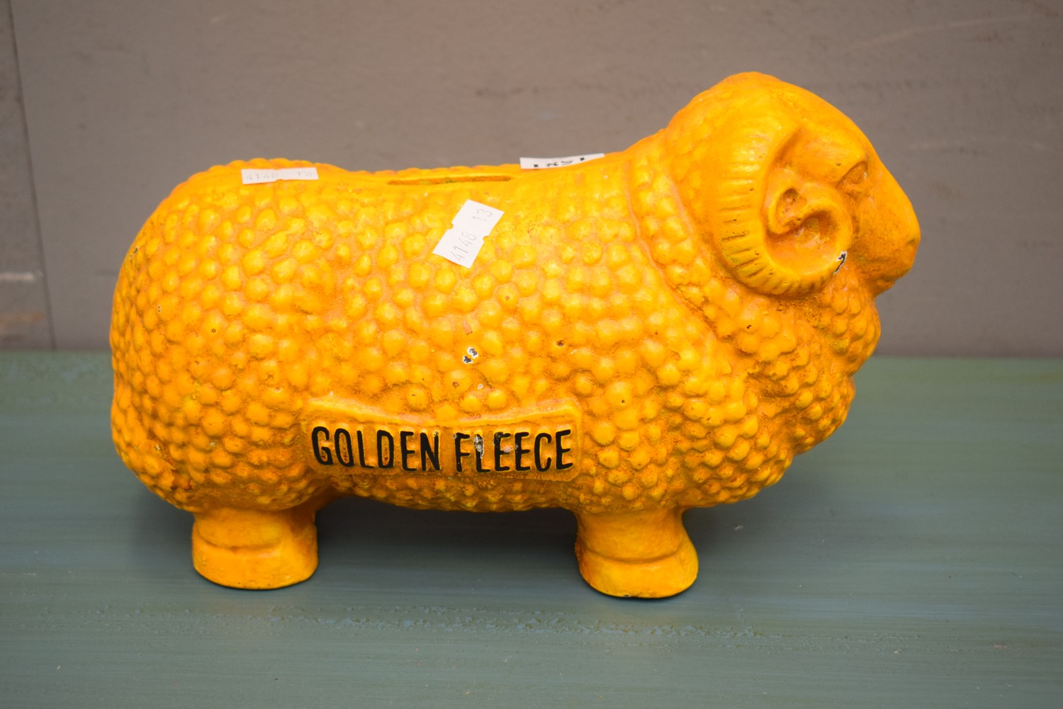 A CAST IRON GOLDEN FLEECE MONEY BOX (16H X 26W CM) (SMALL ITEM)