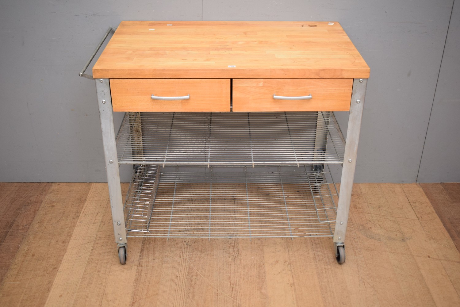 AN INDUSTRIAL STYLE BUTCHER'S BLOCK (86H X 102W X 63D CM) (LARGE ITEM)