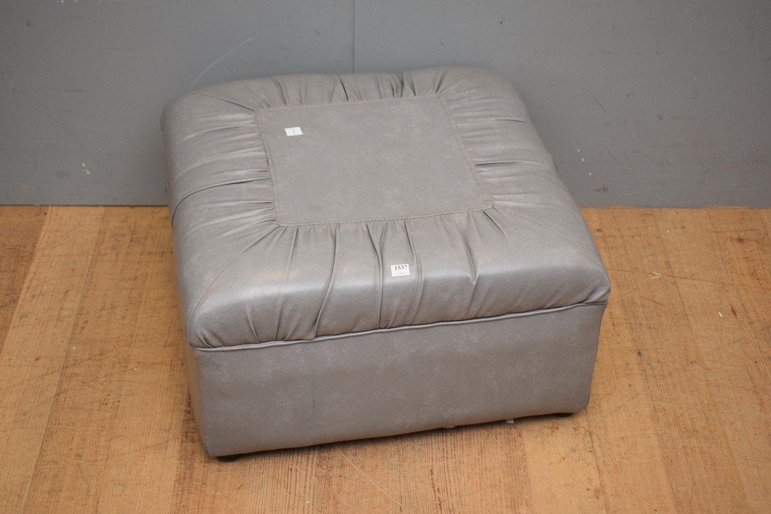 A GREY LEATHER OTTOMAN (34H X 63W X 62D CM) (MEDIUM ITEM )