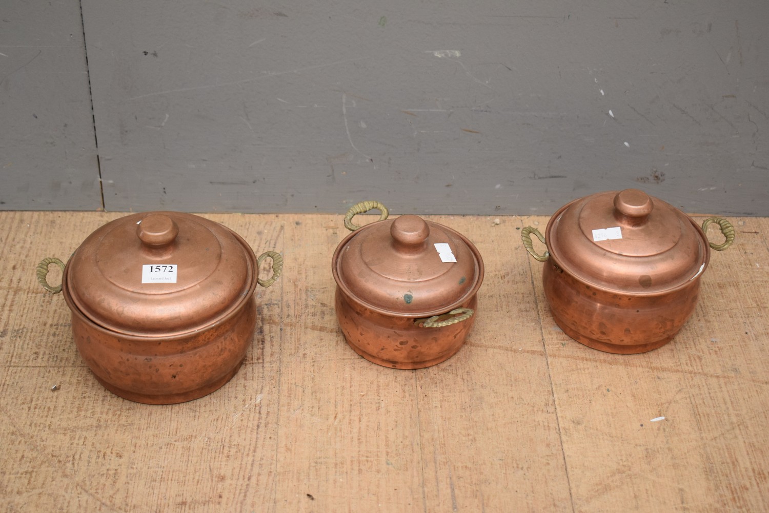 A SET OF THREE COPPER POTS (LARGEST 14H X 19W CM) (SMALL ITEM)