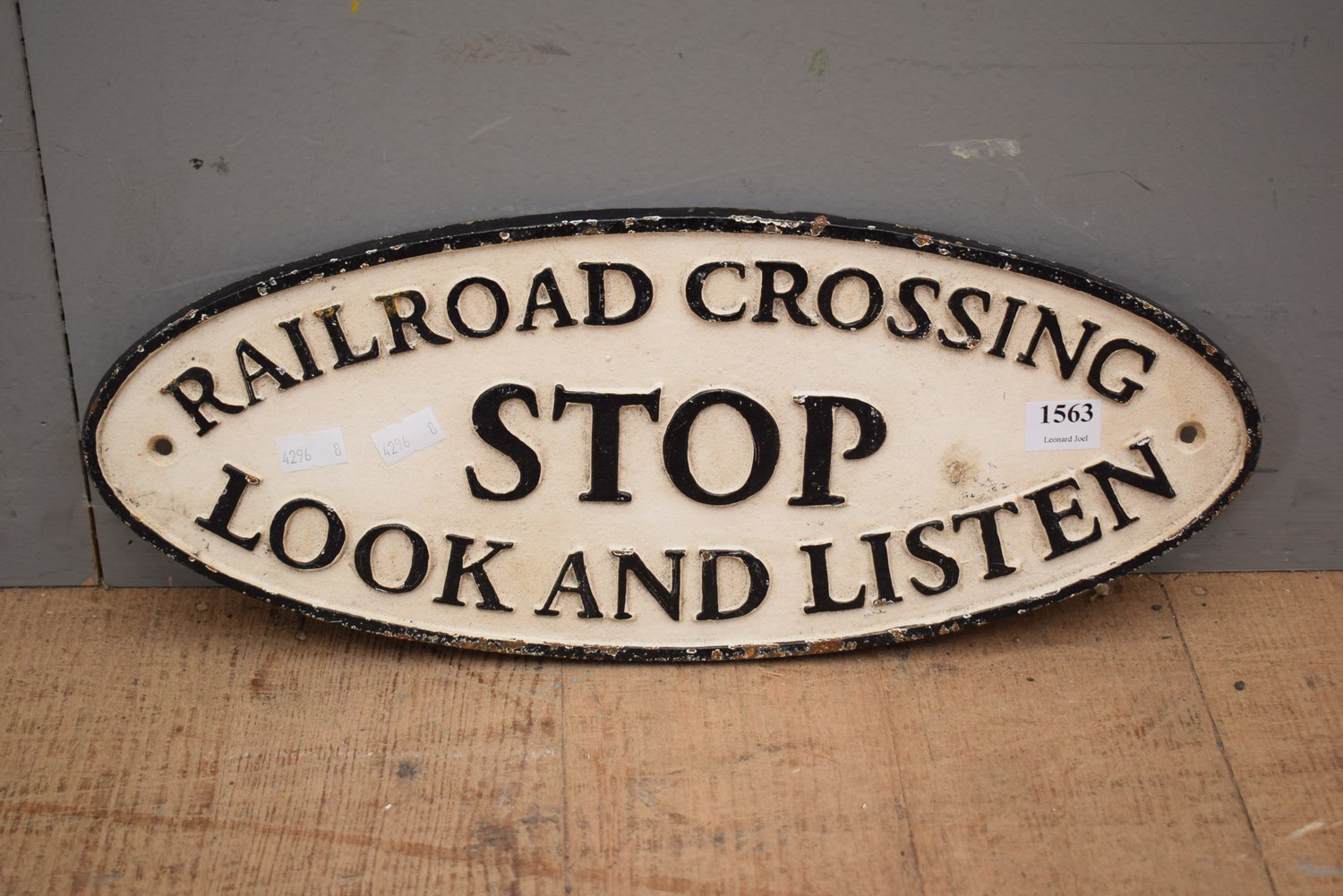 A METAL RAILROAD PLAQUE (15H X 39W CM) (SMALL ITEM )