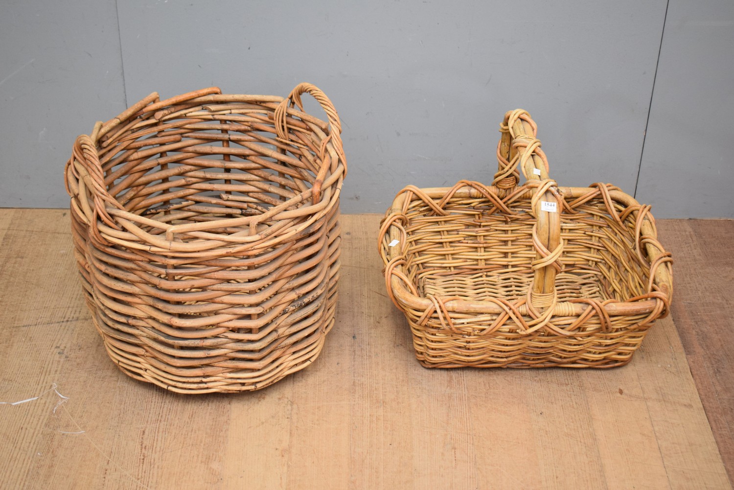 TWO WICKER BASKETS (LARGER 48H X 50D CM) (MEDIUM ITEM)