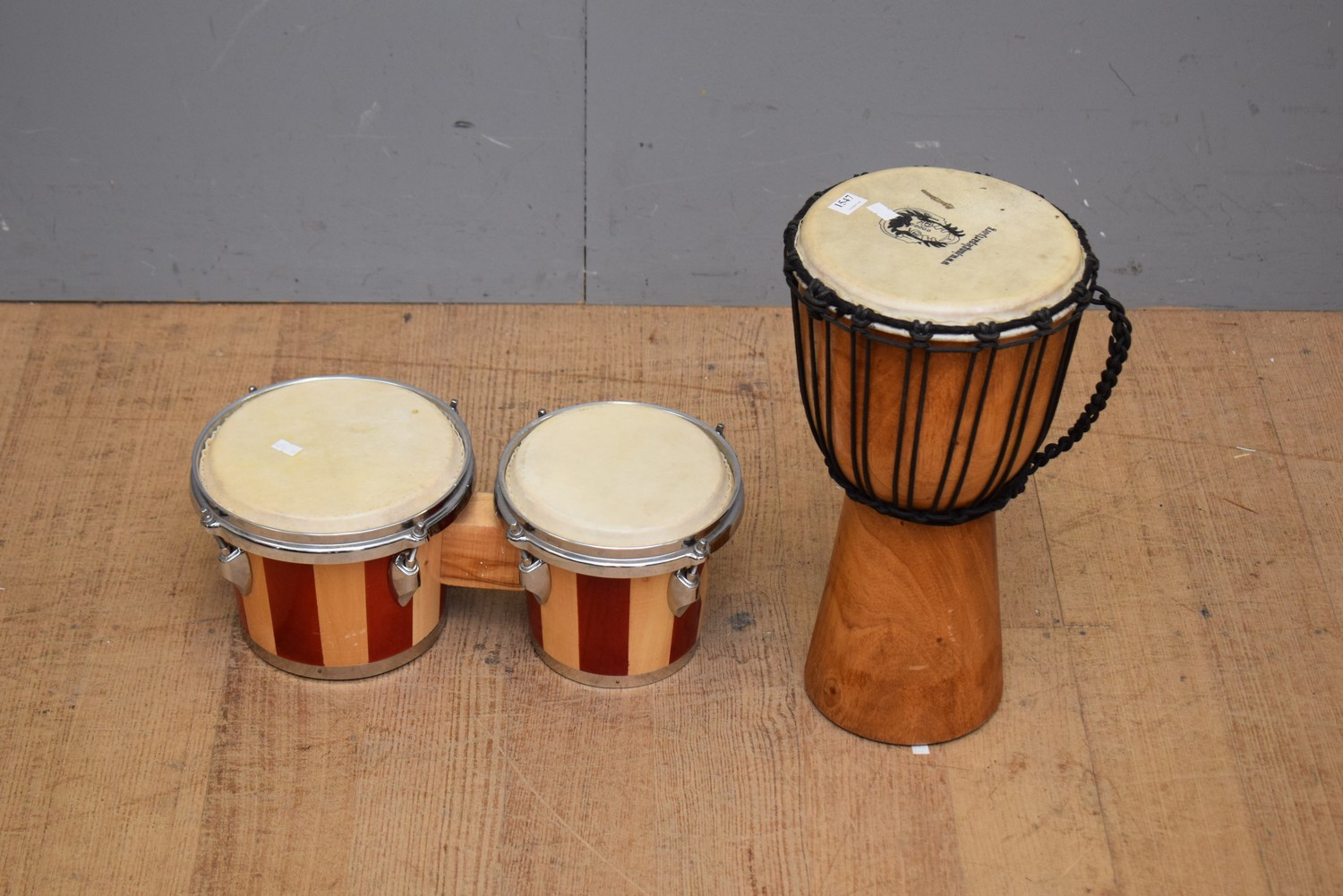 TWO BONGO DRUMS (LARGER 40H X 23D CM) (SMALL ITEM)