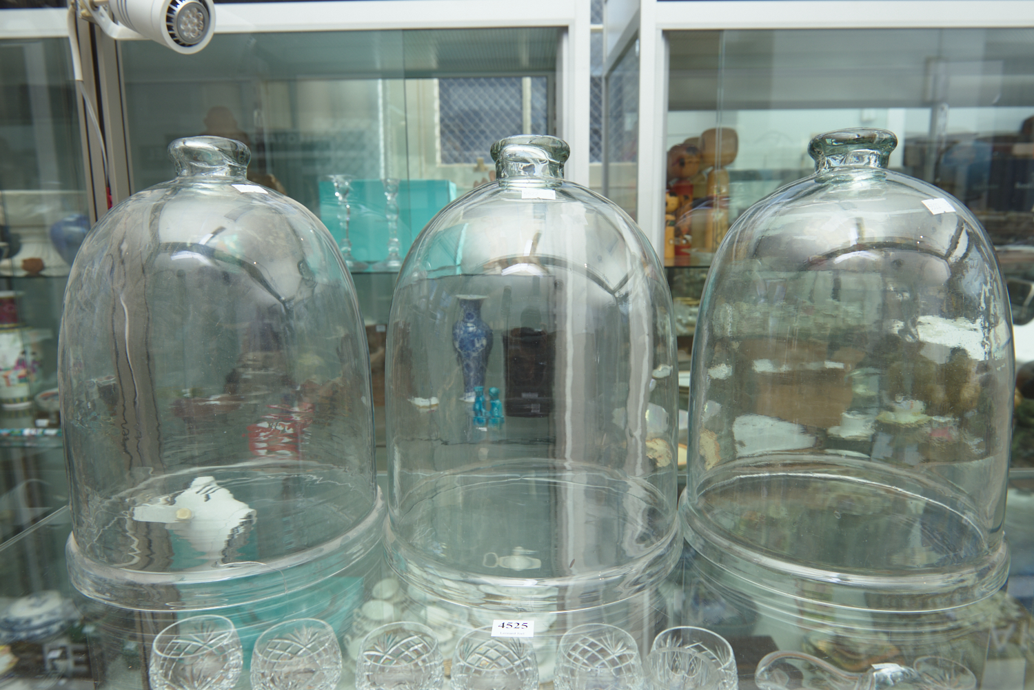 THREE GLASS CLOCHES H.29CM EA (A/F)