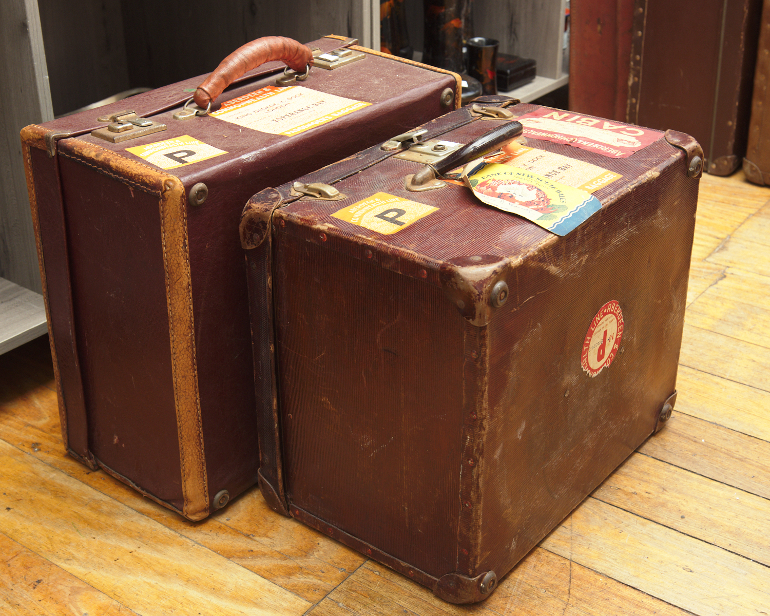 TWO SMALL TRUNKS WITH SHIPPING LABELS AND CONTENTS (MEDIUM DELIVERY SIZE)