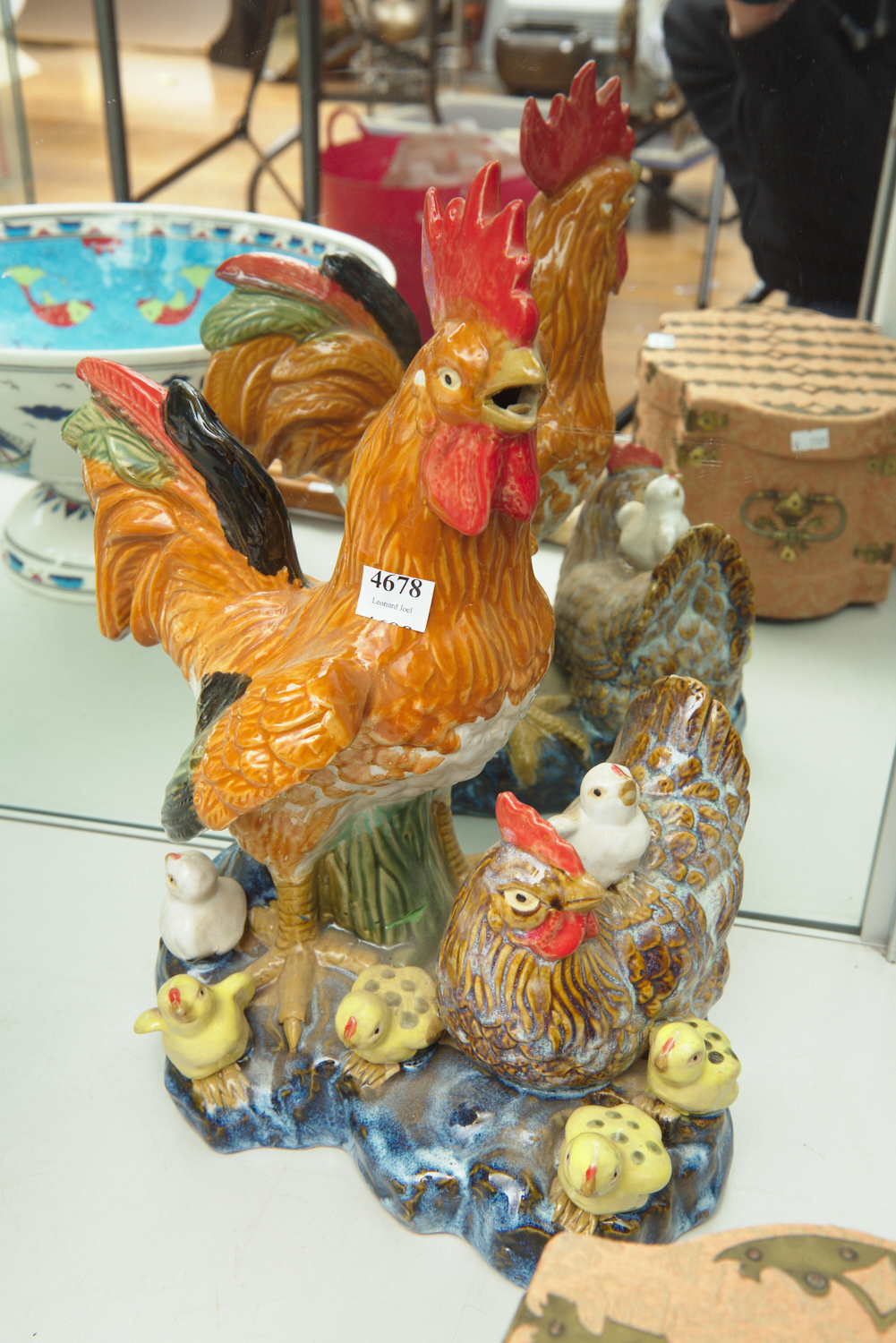 A CERAMIC FIGURE GROUP OF FOWL H.38CM