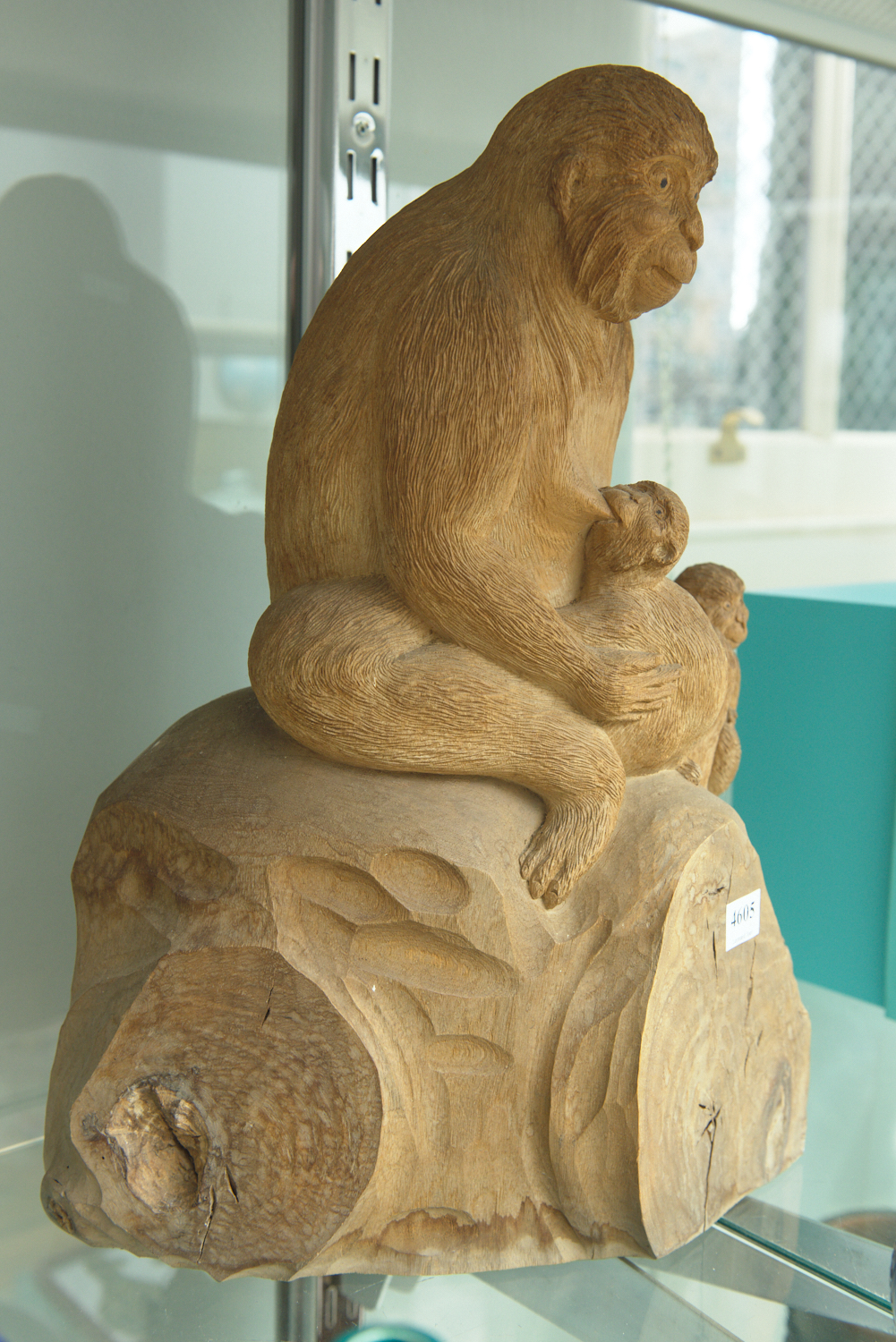 A CARVED WOOD MONKEY FIGURE GROUP H.40CM