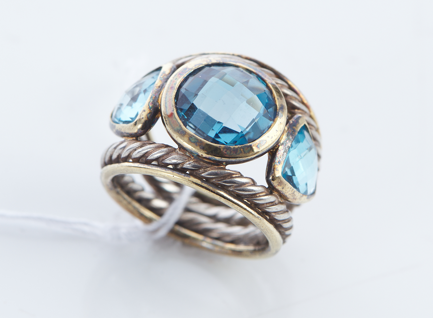 A FANCY CUT TOPAZ RING BY DAVID YURMAN, IN STERLING SILVER AND 18CT GOLD, SIZE J