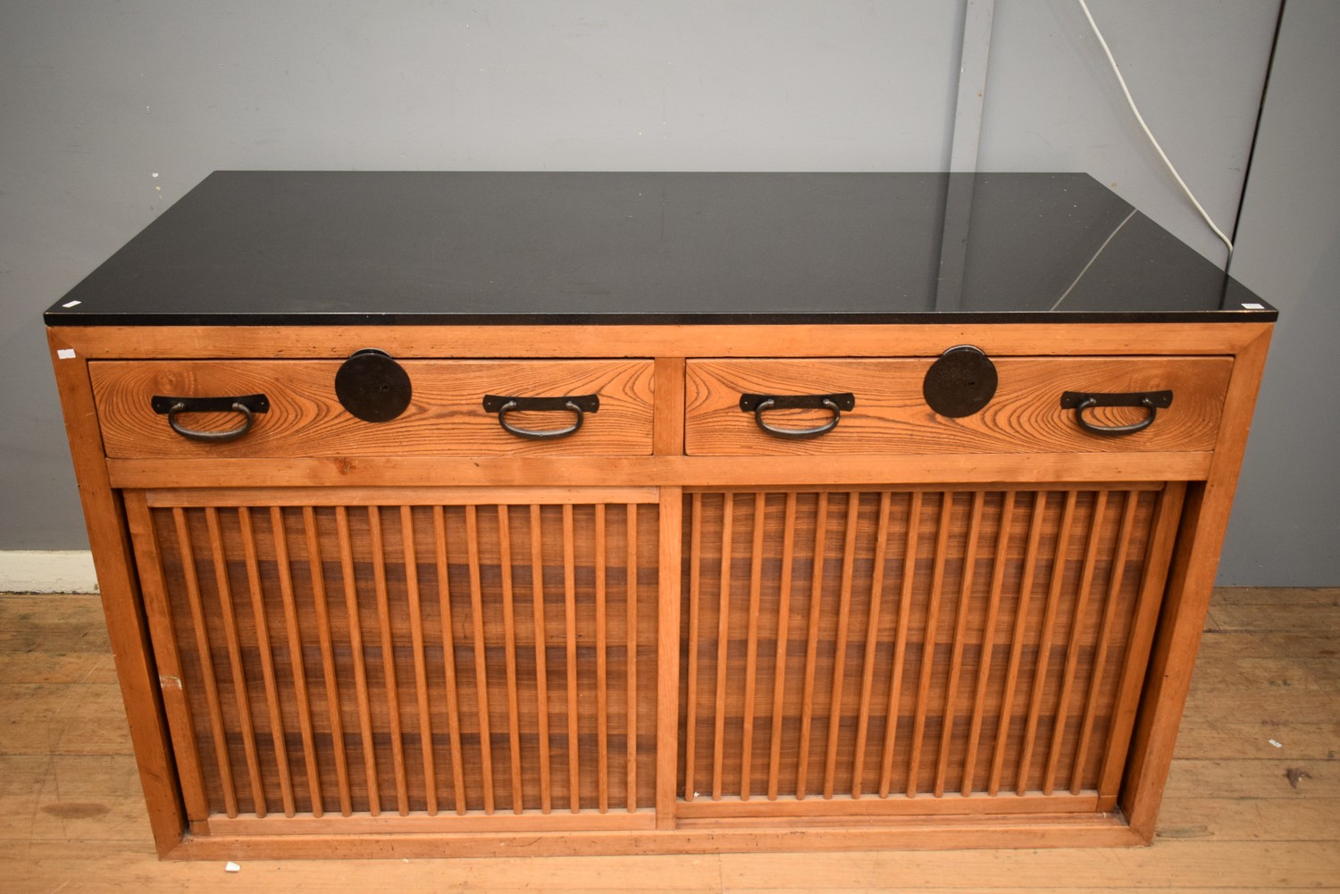 A SUBSTANTIAL GRANITE TOPPED JAPANESE SIDEBOARD (A/F) (98H X 168W X 80D CM)(PLEASE NOTE THIS HEAVY ITEM MUST BE REMOVED BY CARRIERS AT THE CUSTOMER'S EXPENSE. LEONARD JOEL STAFF CANNOT ASSIST CARRYING THIS ITEM) (XX-LARGE ITEM)