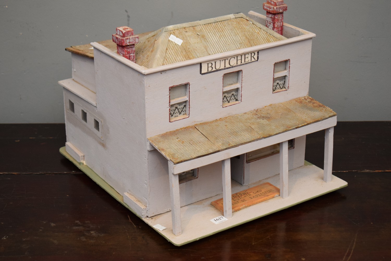 A MINIATURE BUTCHER'S SHOP (A/F) (31H X 36W X 42D CM) (SMALL ITEM)