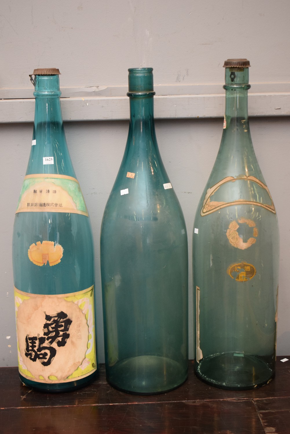 A COLLECTION OF THREE LARGE BLUE SAKE BOTTLES (A/F) (82 CM H) (LEONARD JOEL DELIVERY SIZE: MEDIUM)