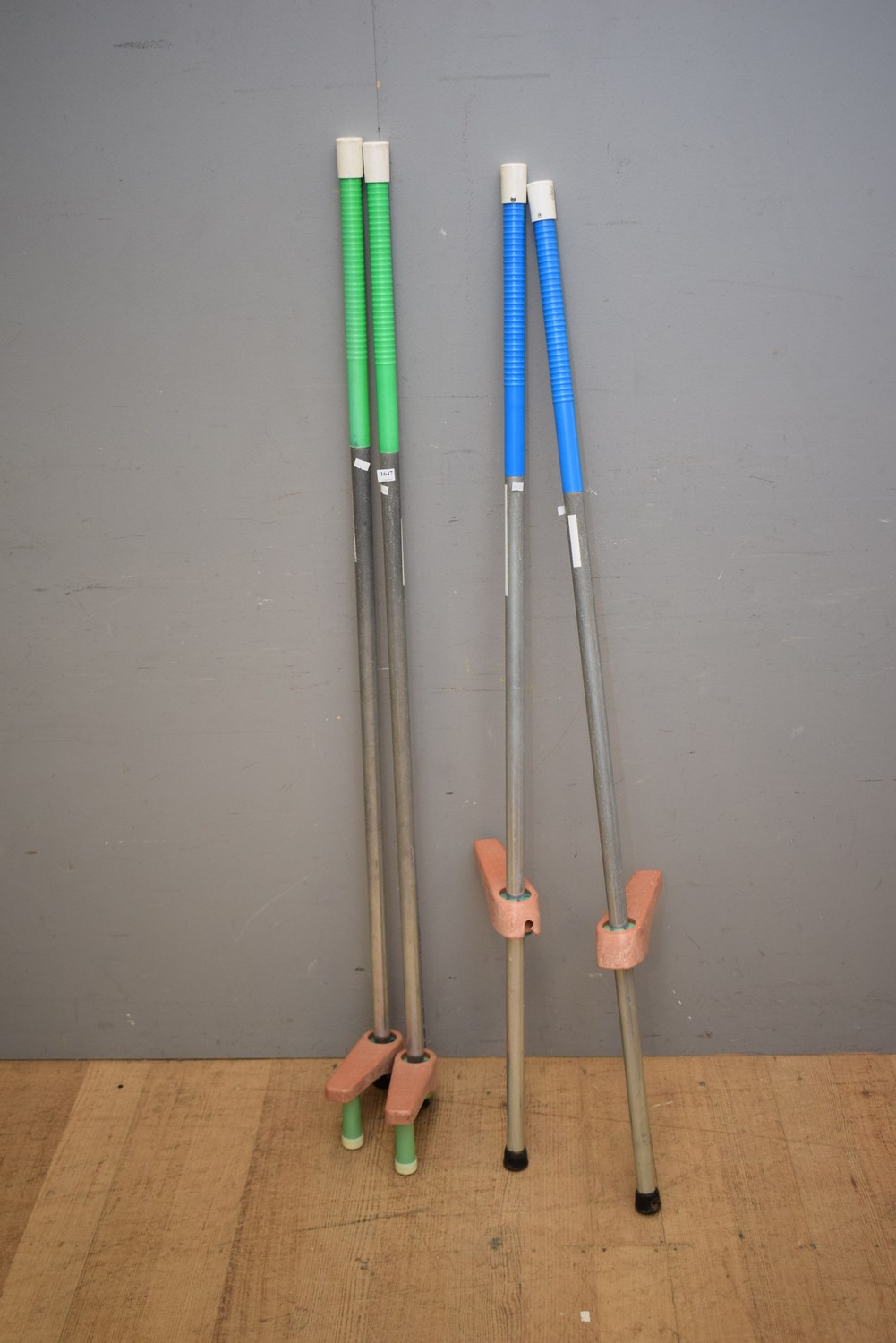 TWO PAIRS OF WALKING STILTS (A/F) (153H CM) (SMALL ITEM)