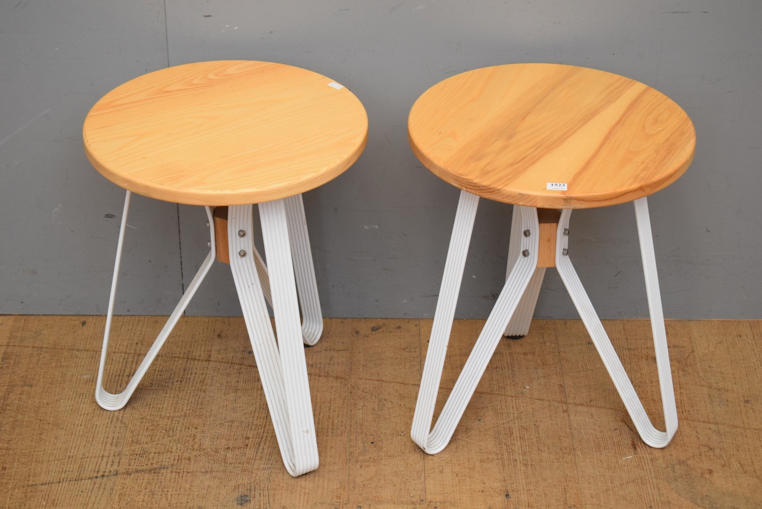 A PAIR OF TIMBER SIDE TABLES (A/F) (47H X 39D CM) (SMALL ITEM)