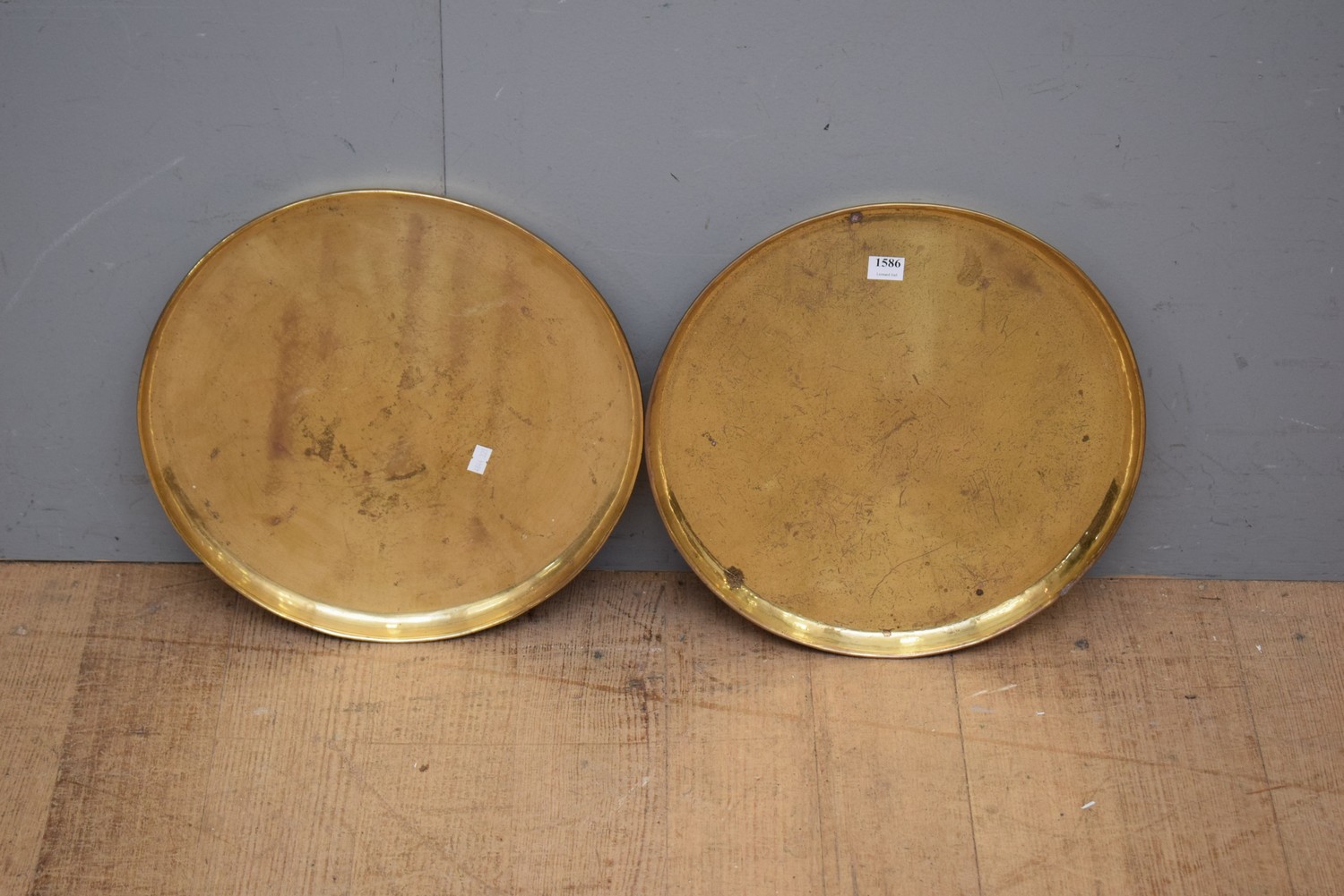 TWO BRASS TRAYS (A/F) (36 CM D) (SMALL ITEM )