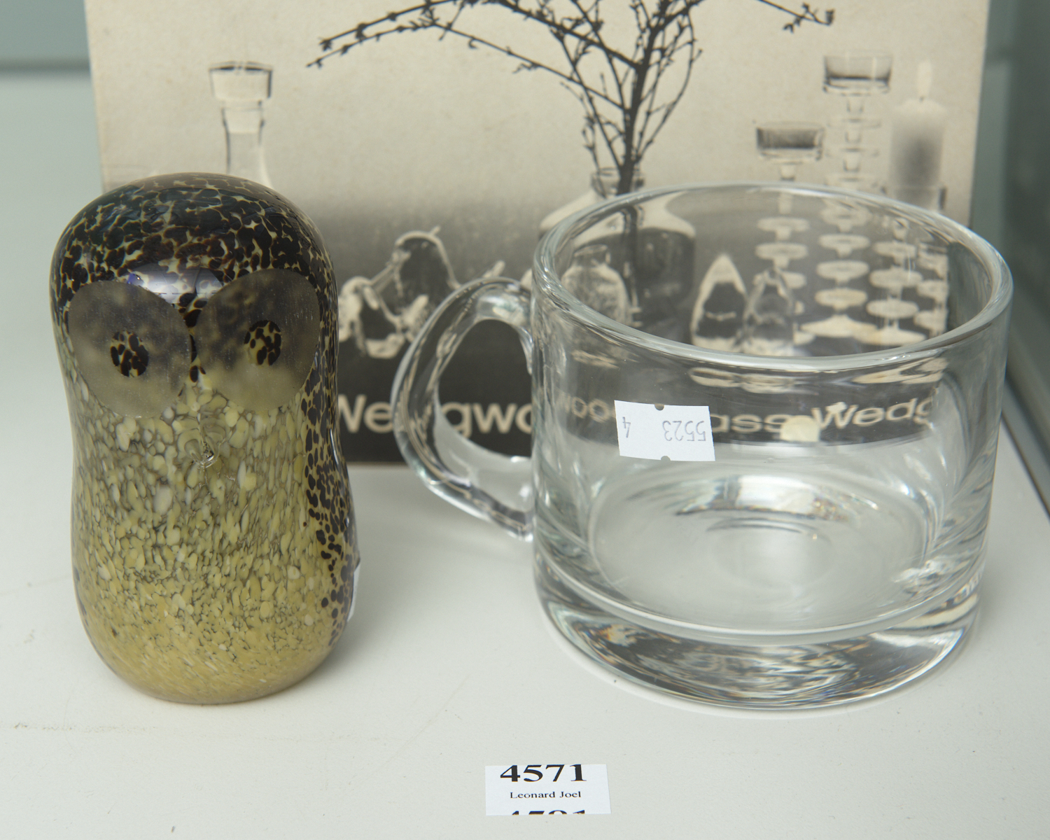 A LARGE WEDGWOOD MUG AND OWL FIGURINE H.12CM, LEONARD JOEL DELIVERY SIZE: SMALL