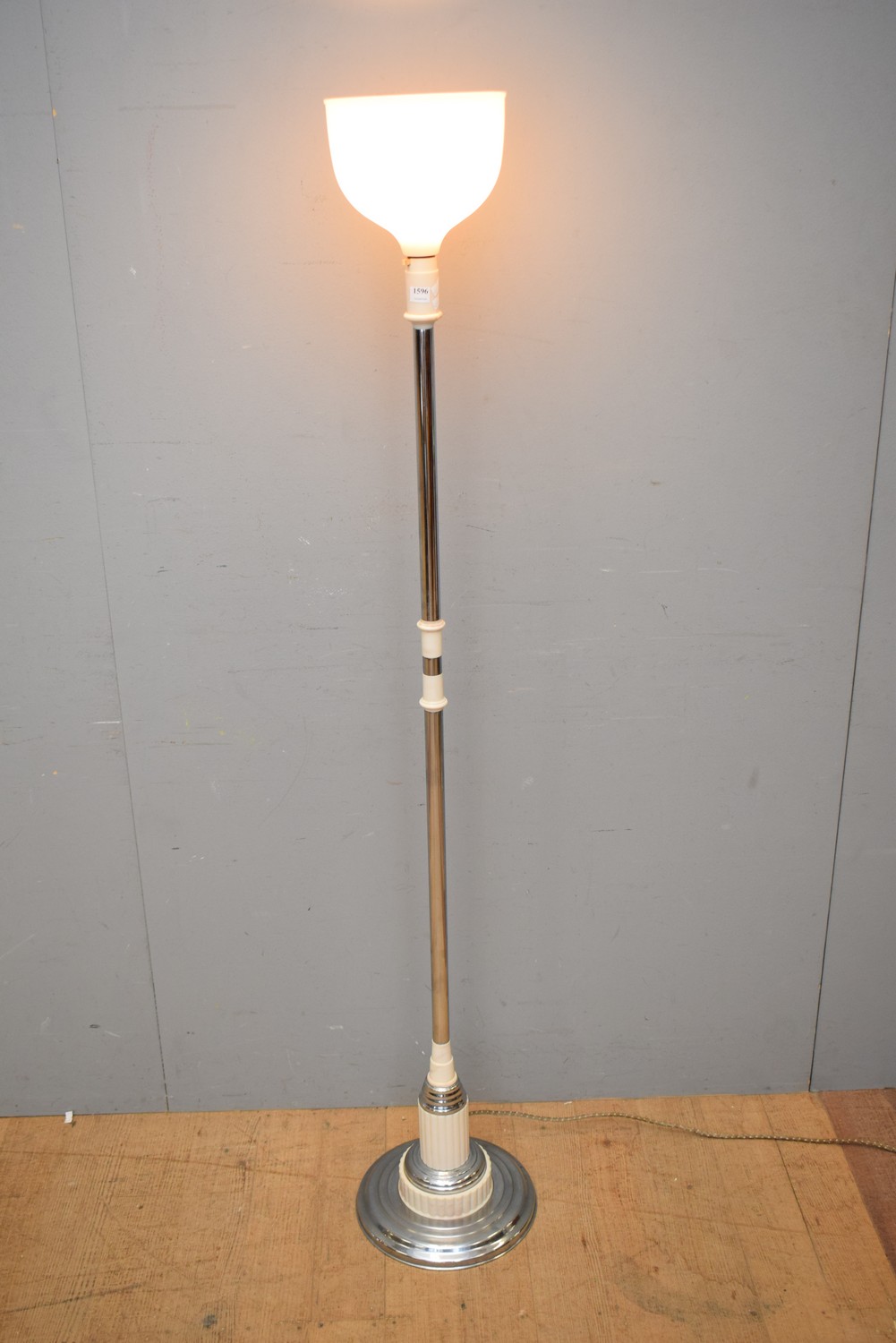 AN ART DECO CHROME AND BAKELITE STANDARD LAMP (A/F, DENT TO BASE) (161 CM H) ( MEDIUM ITEM)