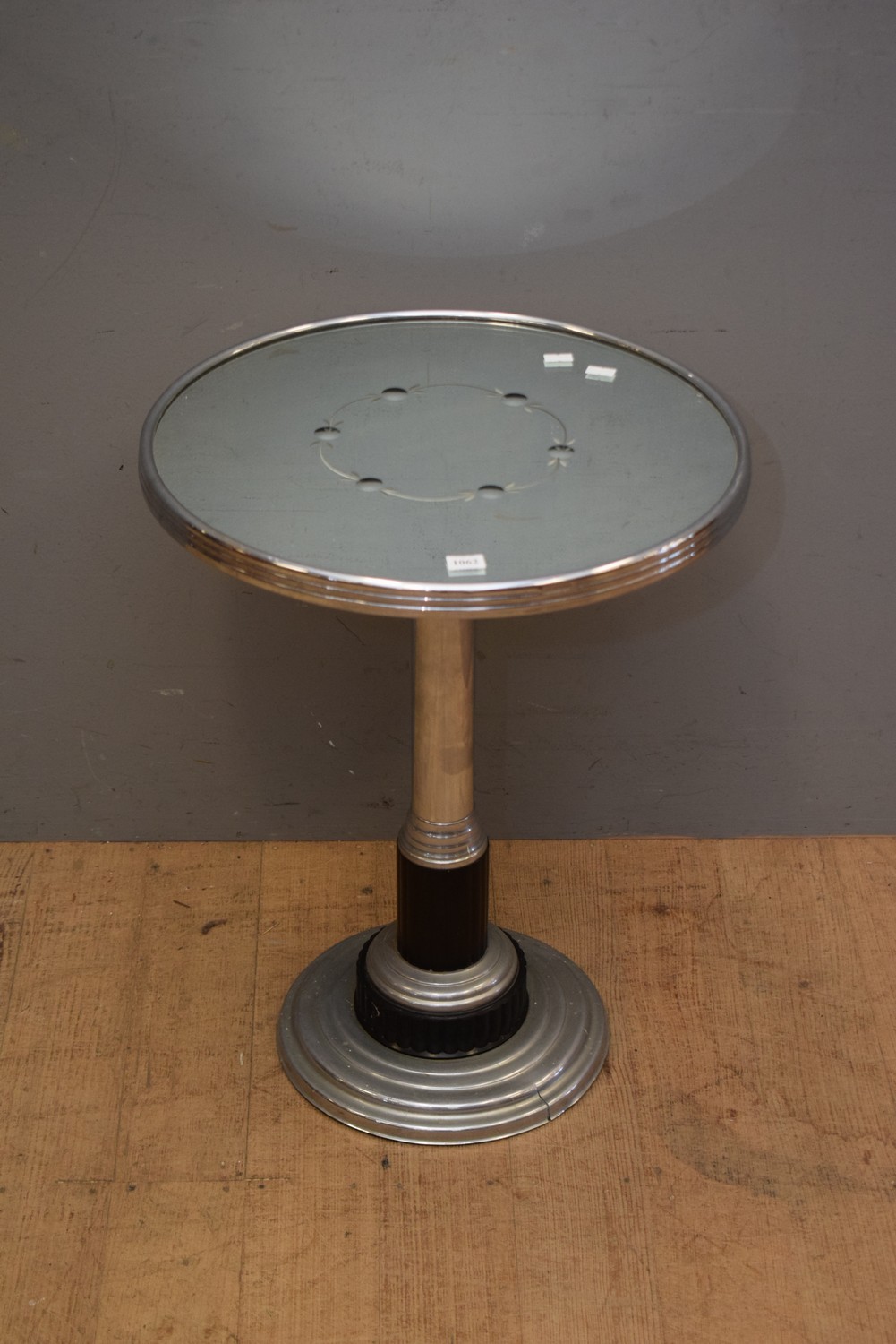 AN ART DECO CIRCULAR SIDE TABLE WITH ETCHED GLASS (A/F CRACK TO BASE) (58H X 46D CM) (MEDIUM ITEM)