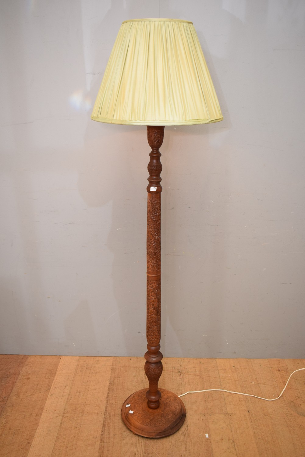 A DECORATIVELY CARVED ROSEWOOD STANDARD LAMP (181 CM H) (MEDUIM ITEM)